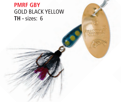 Panther Martin Classic Fly spinners include all of the features of the Classic Regular spinner and have coloured bodies and natural coloured hackles on the hooks to add to the natural flash of the blades.
