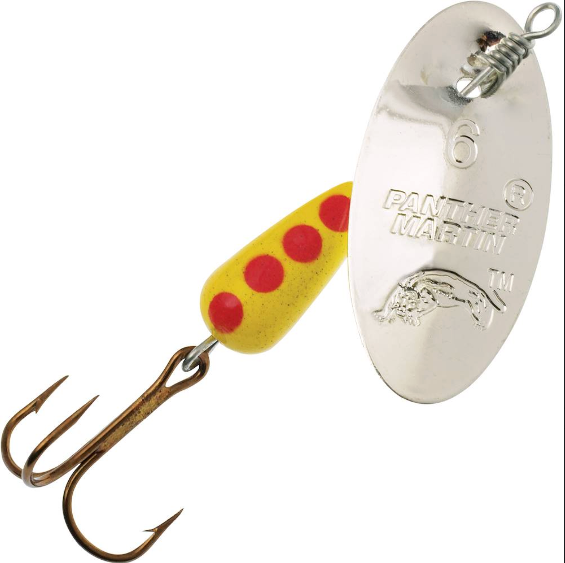 Panther Martin is truly the world’s “Classic spinner”. It has an original concave-convex blade design that maximizes water flow over the blade to produce a unique blade rotation and flash. Panther Martin spinners have no clevis to connect the blade to the shaft. This means that each blade rotation is different and unpredictable, imitating the natural action and vibration of a variety of creatures fish feed on. Each spinner is precisely weighted and balanced to produce a combination of flash, sound and vibration that fish can’t resist.