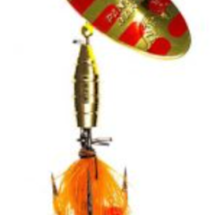 Panther Martin's Salamander spinners feature naturally coloured outer blades in shades of pink, red, black and yellow combined with natural coloured bodies.
