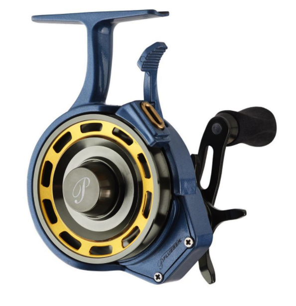 Improve presentation and drop bait to the strike zone quickly with the Pflueger® President® Inline Ice Reel. Lightweight composite construction meets the durability of an aluminum spool. This reel features a free-spool trigger system for one handed operation and magnetic free spool brake for improved presentation. The 5+1 bearing system contributes to smooth performance on the ice, while the spool fender and spool lock help manage the line for fewer tangles both on and off the ice.