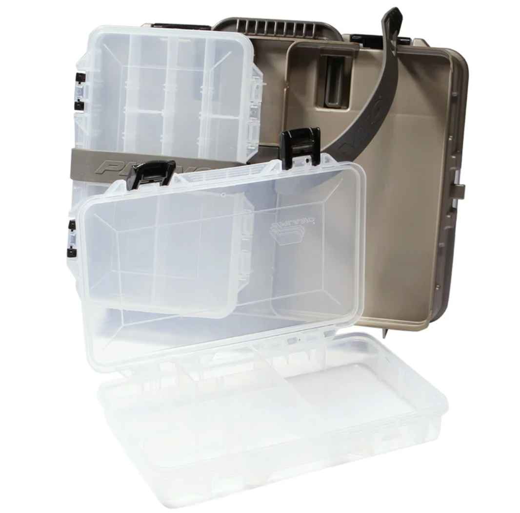 Chock-full of storage, the Plano Flex N’ Go Satchel provides anglers with the ability to quickly switch out tackle n’ go. One side consists of a deep bin with 4-9 adjustable compartments and enough room to store reels or spools of line. The opposite side features a flexible latch that holds two 3600 utility boxes securely in place. Easily interchangeable the 3600 utility boxes can be switched out to fit whatever fishing applications you need. The Plano Flex N’ Go Satchel is the perfect storage choice for the angler who fishes for a variety of species.