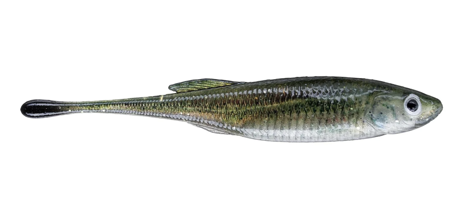 Designed to enhance finesse techniques through ultra-realistic design, action, and colors, the Berkley PowerBait Drip Minnow features a “drip” shaped tail for subtle action when twitching or shaking. An ideal choice for drop shotting, strolling, or pairing with a small jig head, the head and body perfectly mimics shiners and baitfish with a molded internal core for added realism, visible in the stomach detail of the translucent colors. Offering extreme finesse for anglers looking to imitate small shiners and minnows, the Berkley PowerBait Drip Minnow will flash and dart its way into the mouth of big bass lurking in your local waterways.