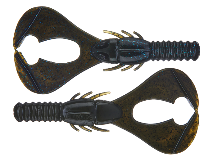 Created to perfectly fit your jigs and generate big bites with new bass-activating action, the Berkley Powerbait Shape 108 Craw features two large claws that flap simultaneously with "Bird-Wing" style movement as they move through the water column. Poured with heavy ribbing to provide plenty of surface area for extreme PowerBait flavor, the smashed-style body allows for improved hook-up ratios with Texas rigs and other techniques.