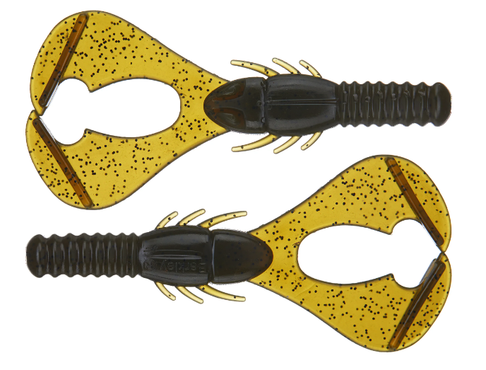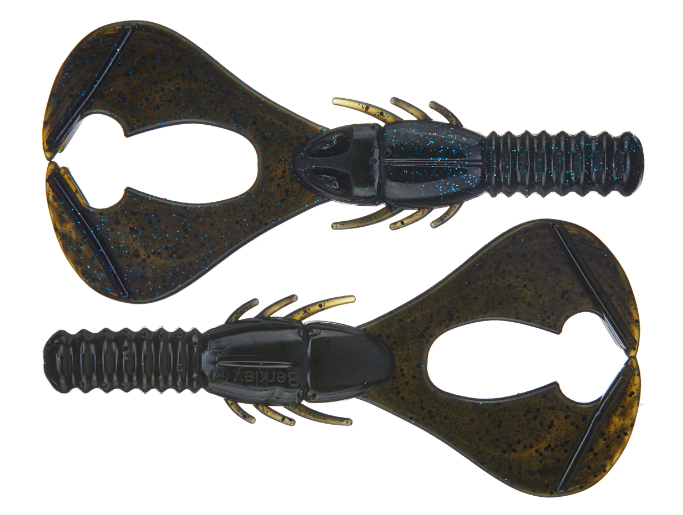 Created to perfectly fit your jigs and generate big bites with new bass-activating action, the Berkley Powerbait Shape 108 Craw features two large claws that flap simultaneously with "Bird-Wing" style movement as they move through the water column. Poured with heavy ribbing to provide plenty of surface area for extreme PowerBait flavor, the smashed-style body allows for improved hook-up ratios with Texas rigs and other techniques.