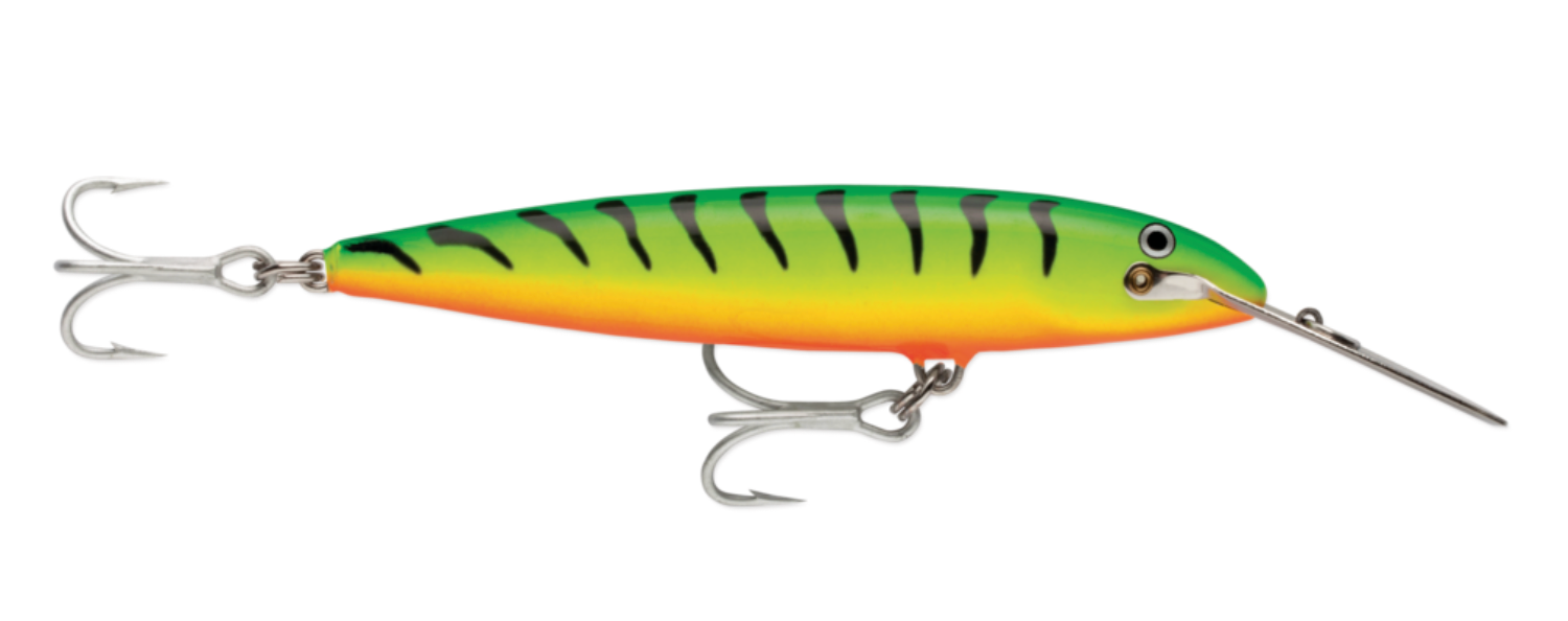 IGFA records confirm that these are the world's number one saltwater hard bodied lure. Built to take the abuse of hard hitting fish like blues, tarpon, tuna and wahoo the Rapala Magnum® CountDown® is rigged saltwater tough. Metal lip, welded line tie, heavy-duty split rings and Perma Steel hooks provide long life and premium performance. Made of super tough African Abachi wood, these sinking lures swim true at any speed, cast or trolled. More World Record fish have been caught with these Rapalas than any other lure. Magnums® are truly "Your Best Shot At A World Record."