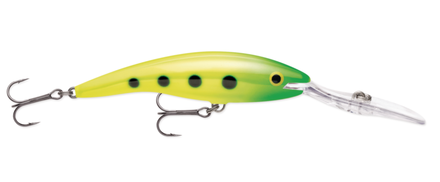 This deep-diving banana-style body lure swims in a pronounced wide tail action without sacrificing the classic Rapala® "wounded-minnow" attraction. The Deep Tail Dancer® features an enlarged, extreme diving lip that plummets the lure as deep as 30 feet unassisted, getting this bait down where the big ones lie during the mid-summer and early fall months. Balsa wood lure with an internal rattle system, the Deep Tail Dancer® features VMC® black nickel treble hooks for quick piercing sharpness and the strength to withstand the fiercest battles. Hand-tuned and tank-tested, each lure swims perfect right out of the box.