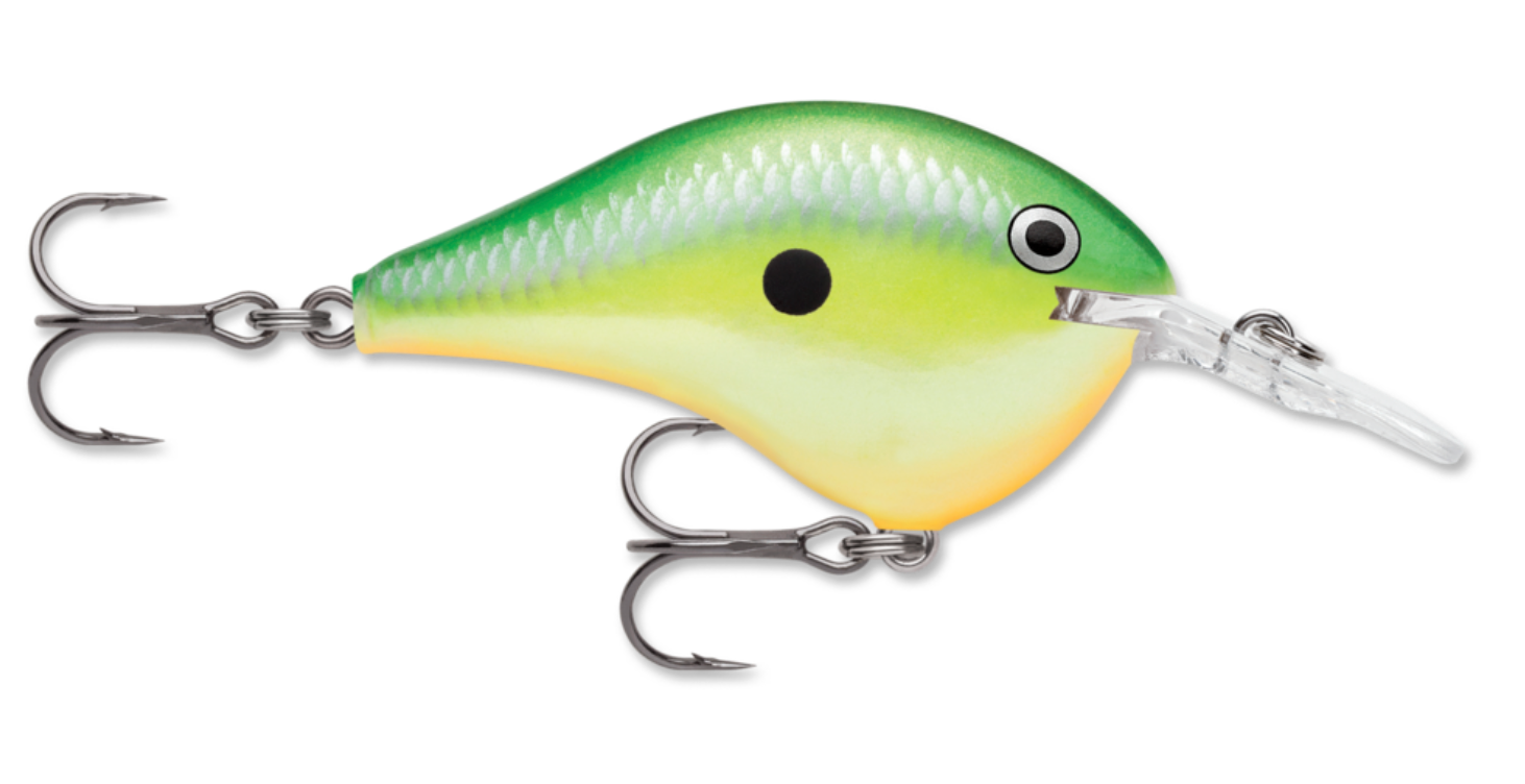 The DT® (Dives-To) series of crankbaits, dive fast to a preset depth and stay in the “strike zone” longer than any than other crankbait on the market. Made from the top seven percent of balsa wood, this consistently perfect wood combined with carefully placed internal weights, tapered fuselage and thin tail design creates the ultimate crankbait action, found only in the DT family. Ultra-thin polycarbonate lip digs the bait down quickly to desired depth. Swimming with a side-to-side action only balsa crankbaits can achieve, the DT cranks deep, yet pulls with ease. Perfectly weighted to rest in a “quick-dive” nose down position allowing for immediate descent to desired depth, the DT® can be easily cast 150 feet. Simply put, the farther the cast, the longer the bait stays in the strike zone. It's the most effective way to cover more water and catch more fish. Internal baritone rattle is tuned for best sound performance. Premiere finishes in all the right color patterns, finished with 3D holographic or painted eyes. All come with premium VMC® black nickel hooks. Each lure is hand-tuned and tank-tested to swim perfectly right out of the box.