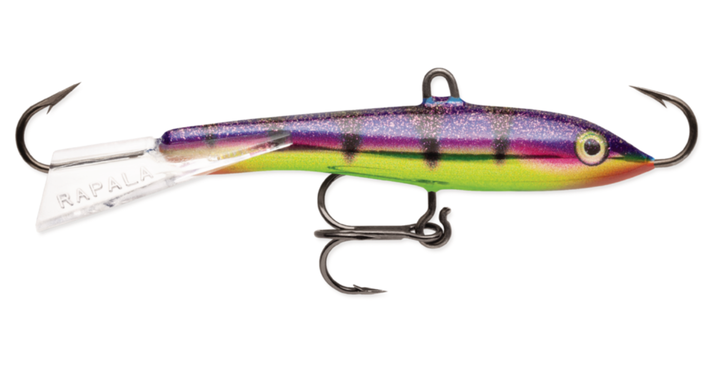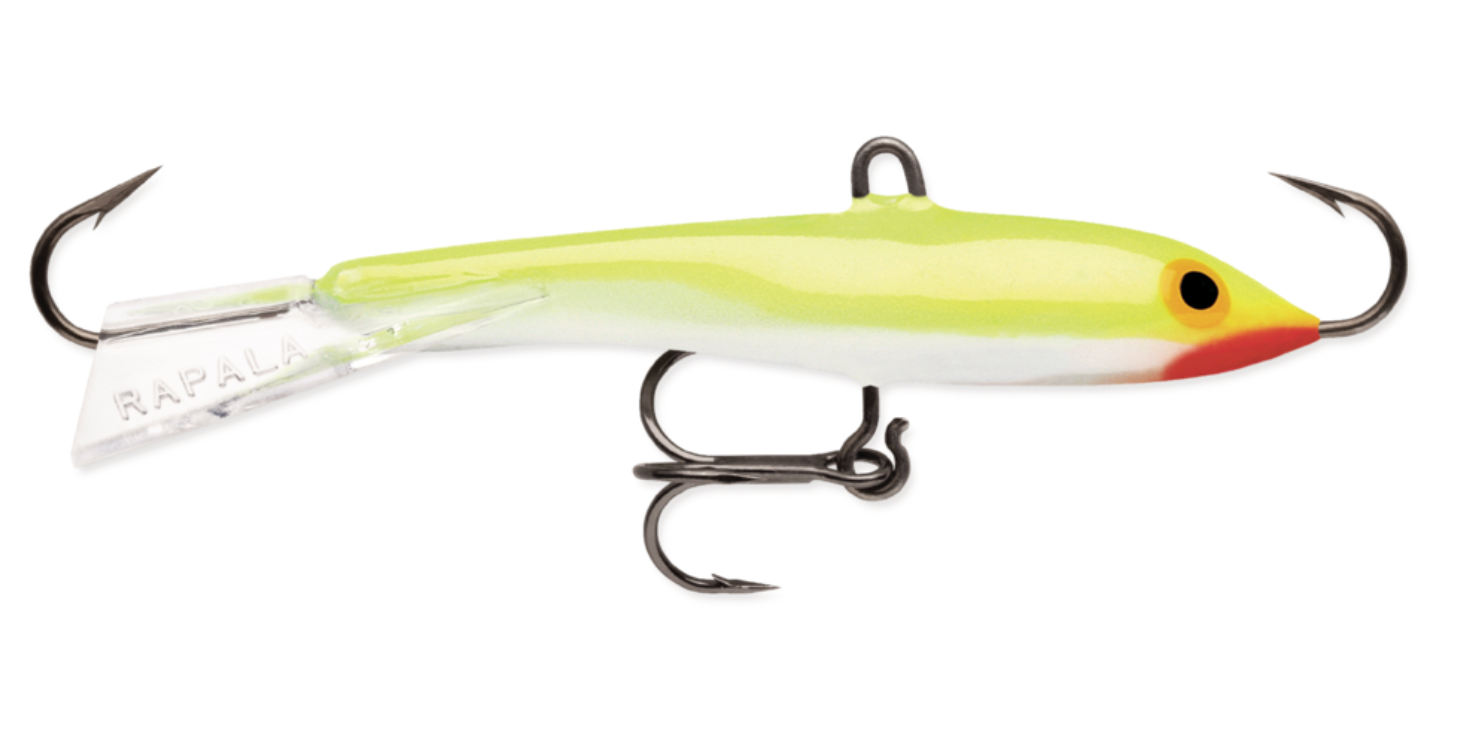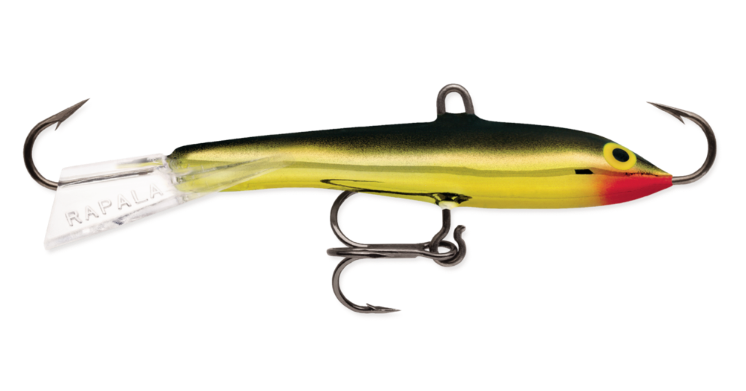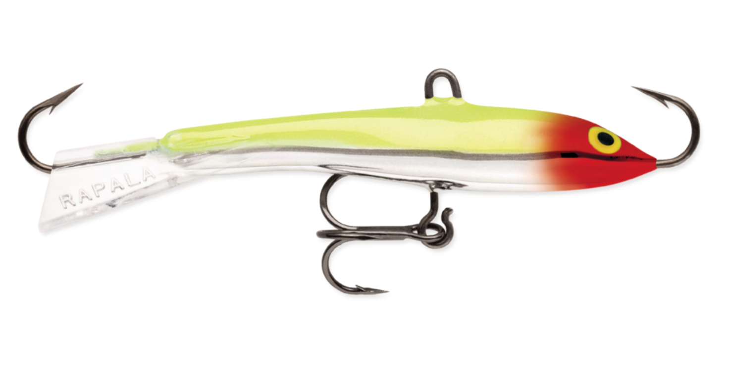 Swimming in tantalizing circles under the ice or in open water for suspended game fish, the Jigging Rap® features a balanced, weighted minnow profile. Single reversed hooks with center treble and eyelet, this bait can also be bottom bounced, yo-yo style off the bottom with unbeatable results. Wide range of sizes is complimented with natural and glow color patterns.