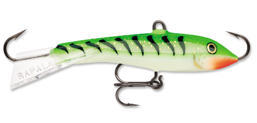 Swimming in tantalizing circles under the ice or in open water for suspended game fish, the Jigging Rap® features a balanced, weighted minnow profile. Single reversed hooks with center treble and eyelet, this bait can also be bottom bounced, yo-yo style off the bottom with unbeatable results. Wide range of sizes is complimented with natural and glow color patterns.