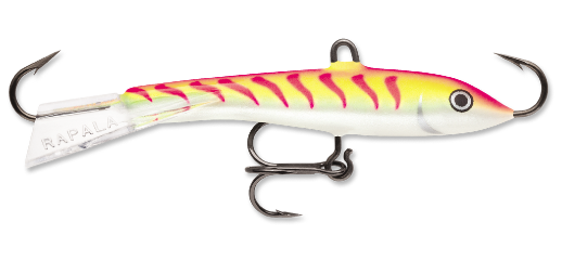Swimming in tantalizing circles under the ice or in open water for suspended game fish, the Jigging Rap® features a balanced, weighted minnow profile. Single reversed hooks with center treble and eyelet, this bait can also be bottom bounced, yo-yo style off the bottom with unbeatable results. Wide range of sizes is complimented with natural and glow color patterns.