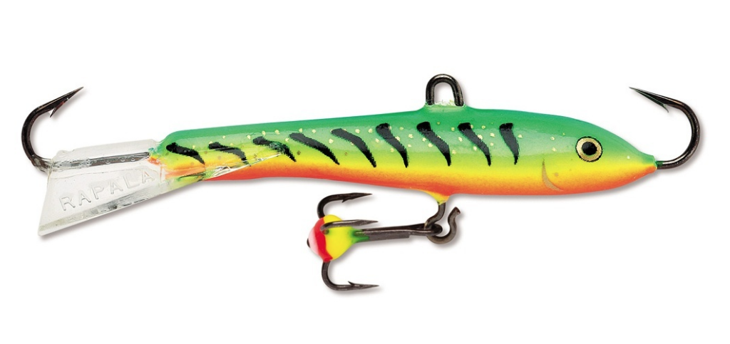 A minnow profile bait, the Jigging Rap swims in tantalizing circles when raised and lowered. Quick snap rod tip darts in sporadic motion. Special Tiger Eye hook imitates fish eye or egg tipped hook.