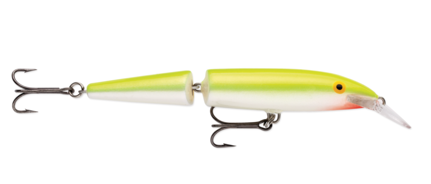 With a slight exaggeration of the unique Rapala "baitfish in distress" swimming action, the Jointed® gets the undivided attention of otherwise disinterested gamefish. This articulated, or "broken-back" bait can be fished top-to-bottom. Swimming action at the slowest of speeds makes this bait the perfect choice after a cold front when fish are traditionally finicky and in a negative feeding mood. Balsa wood construction with VMC® black nickel hooks. Each is hand-tuned and tank-tested for perfect swimming action right out of the box. (J13 has Abachi wood construction)