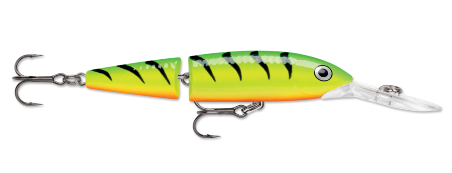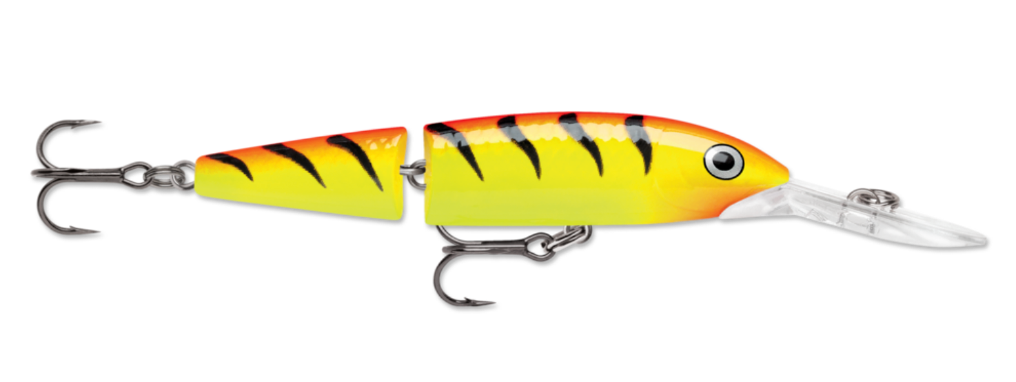 The Jointed Deep Husky Jerk® swims with the classic Rapala "wounded-minnow" wobble and an exaggerated tail action that fish can't refuse. Whether you're working a slow, back-trolling crawl or a high-speed pass, this lure runs straight and true. Slow-sinking properties allow this lure to be fished at any depth. Tough plastic body house internal rattle for added attraction.