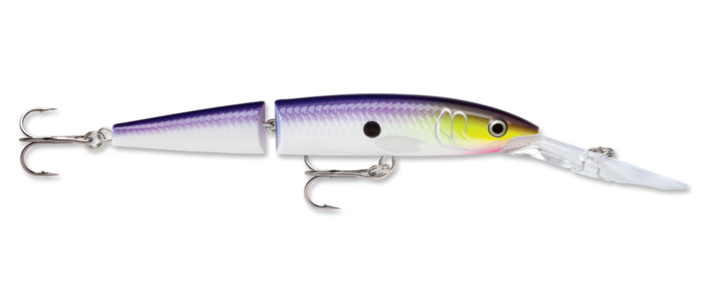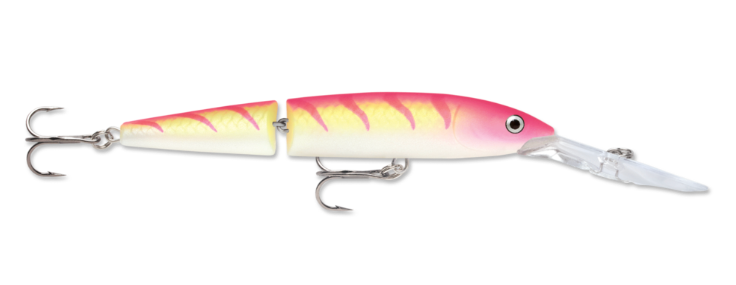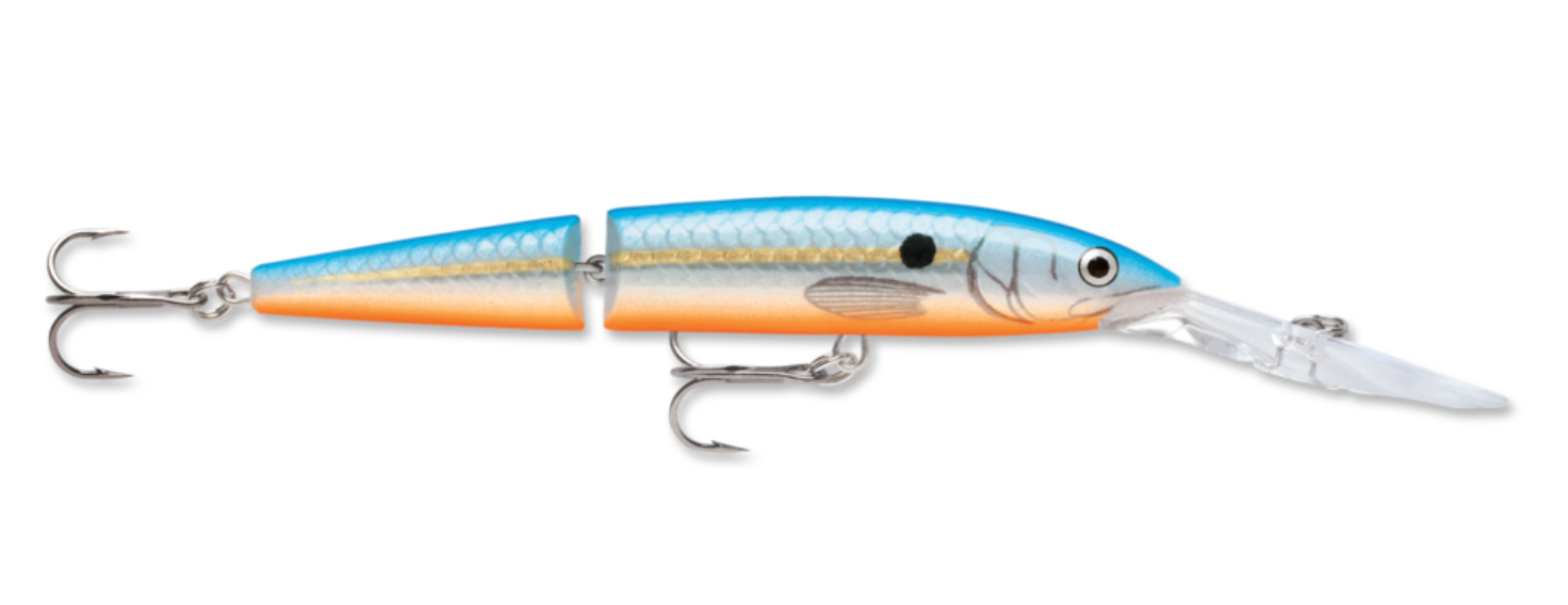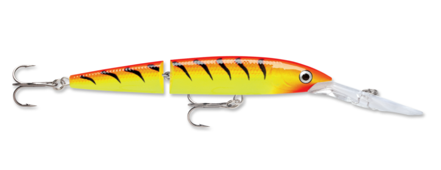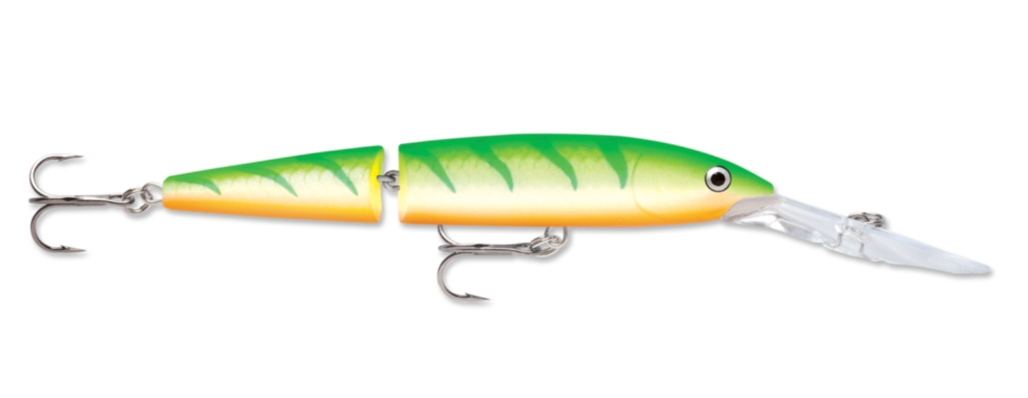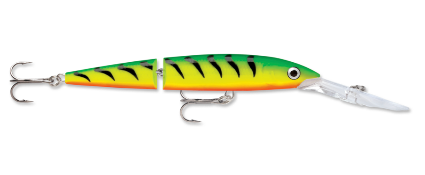 The Jointed Deep Husky Jerk® swims with the classic Rapala "wounded-minnow" wobble and an exaggerated tail action that fish can't refuse. Whether you're working a slow, back-trolling crawl or a high-speed pass, this lure runs straight and true. Slow-sinking properties allow this lure to be fished at any depth. Tough plastic body house internal rattle for added attraction.