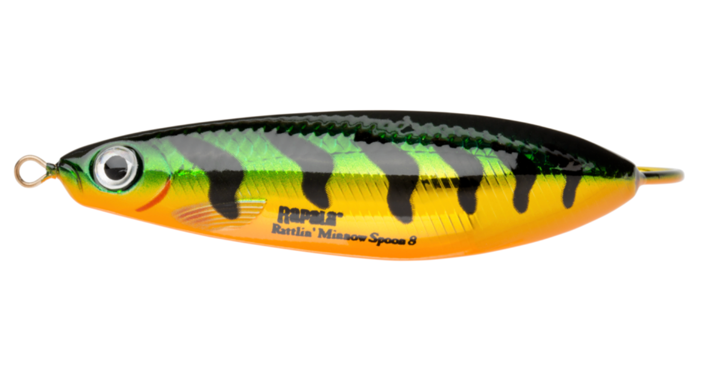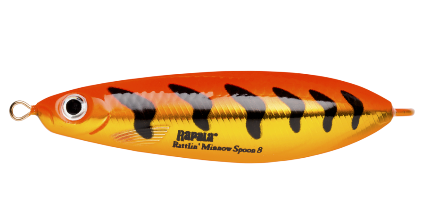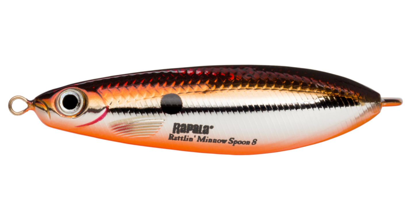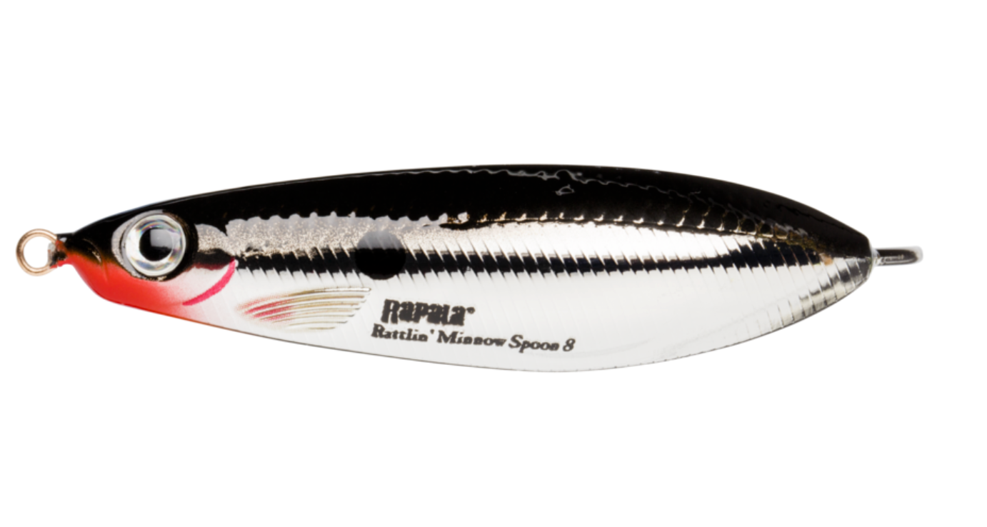 Rattlin' Minnow Spoon® features a unique construction that combines the silhouette of a minnow with the action of a spoon. Wide, irregular sweeping action to create flash. Internal rattle chamber emits additional noise and vibration. Built with a heavy-duty single hook and a weed guard to be fished even in heavy cover. Balanced flutter on the drop with irregular kicks and strong body roll.