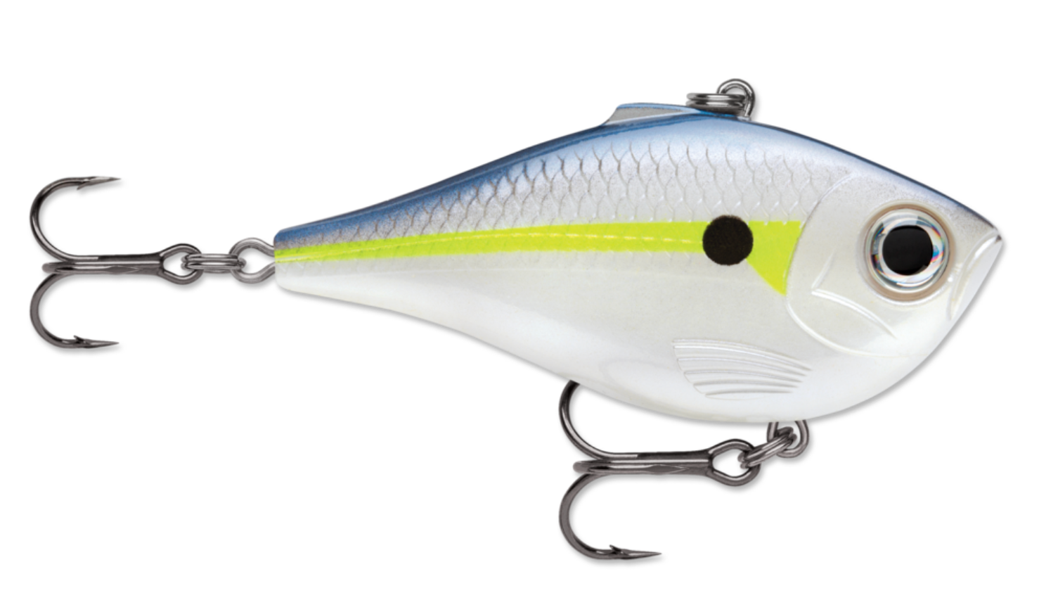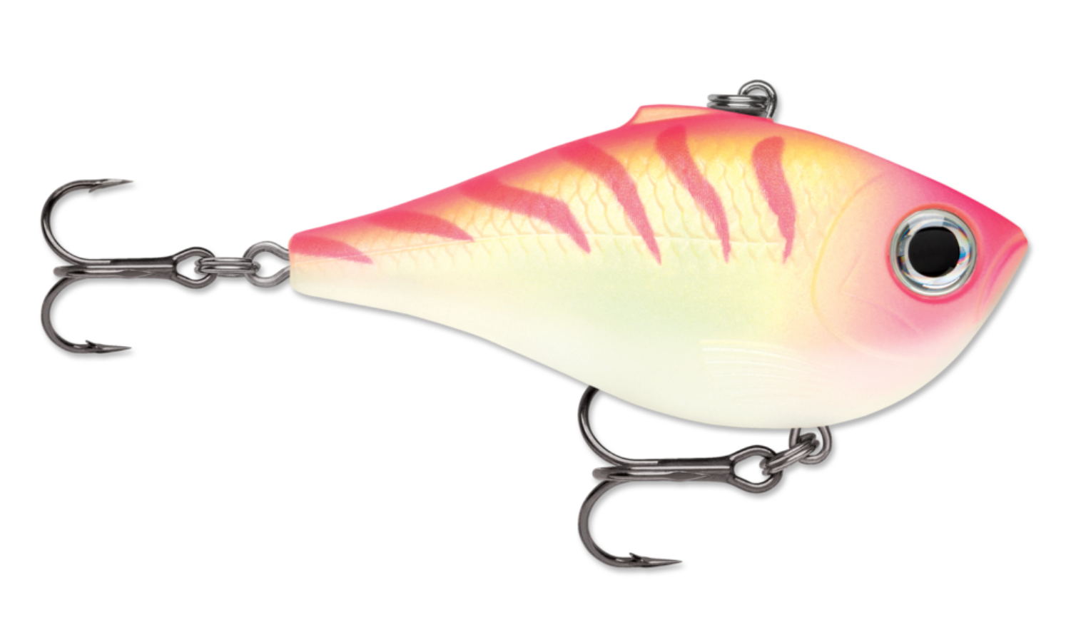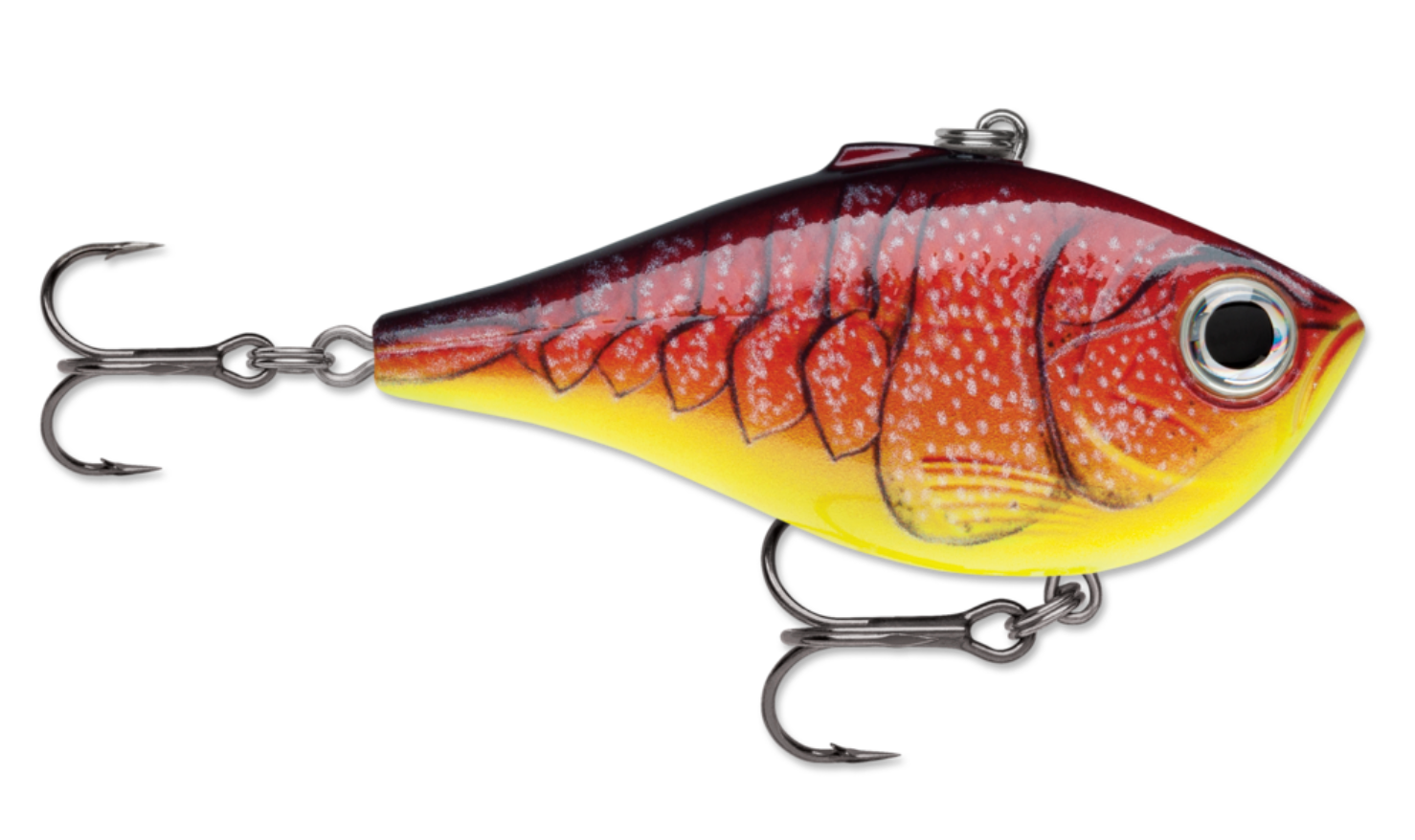 The Rippin' Rap features a lipless, deep belly profile designed to crank, swim and rip. With its skinny sides this bait flutters on the drop. Hard vibrating action on fast or slow retrieves accented with loud, distinctive BB rattle system. Textured scales and gills with deep set 3D holographic eyes. Super easy to fish, the Rippin' Rap® is perfect for pulling over or through grass, bouncing off timber and Rippin' through rocks. Long-casting with variable running depth, this one is just right for clear water where look is key or for fishing stained, dark water where just the right sound is essential. Fast piercing VMC® black nickel hooks seal the deal.