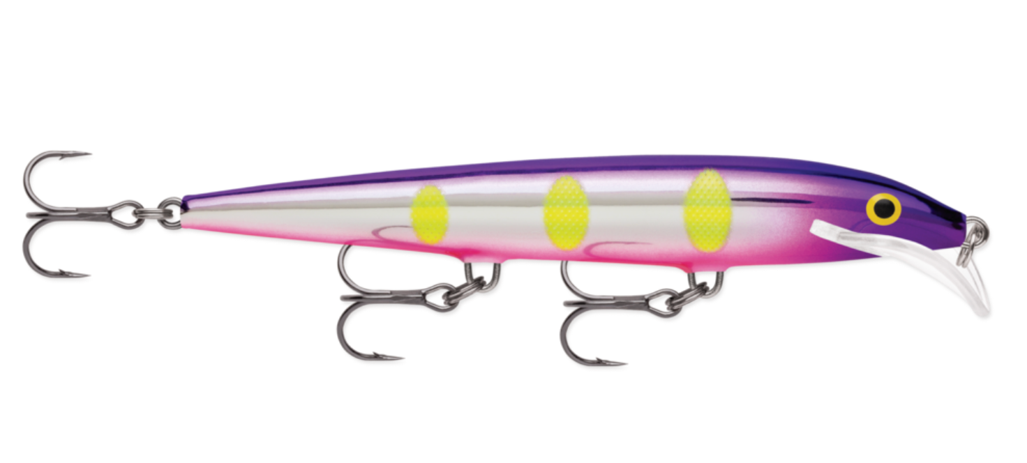 Though evasive in action, this classic Rapala minnow shape has a graceful, natural wobble for finesse tactics, yet responsive enough to be fished aggressively. Baitfish skitter and scatter when they are pursued by predators - it's this erratic and evasive action that triggers the strike. Made of balsa, with a custom Scatter Lip, the Scatter Rap® Minnow consistently swims with an erratic and evasive sweeping action - perfectly mimicking vulnerable baitfish. Cast or trolled, it is the perfect choice for any species of gamefish.