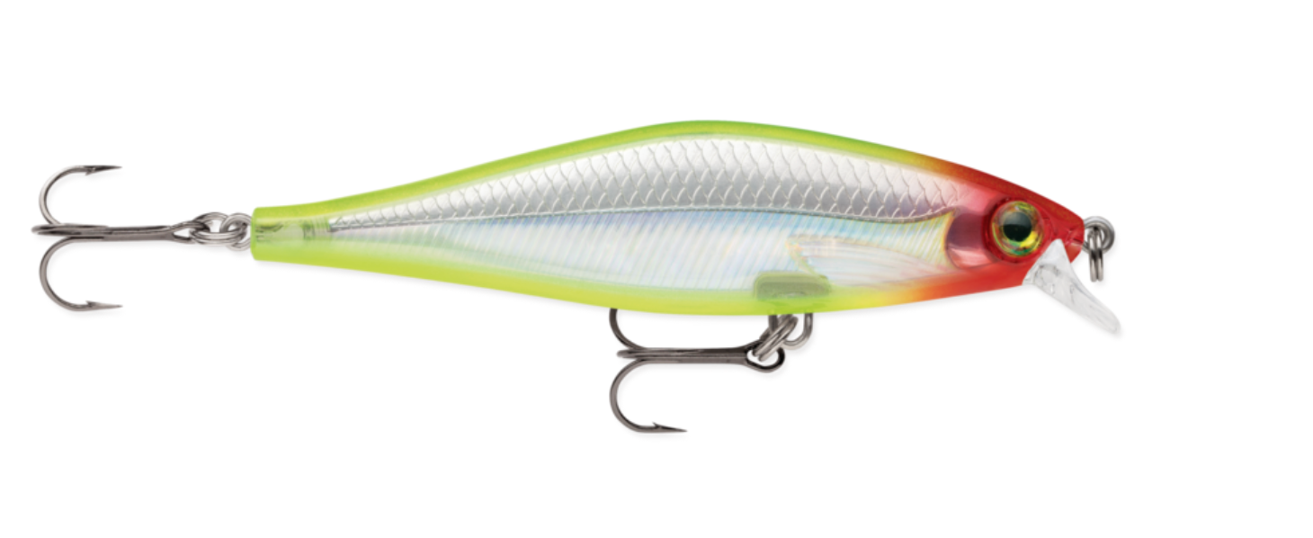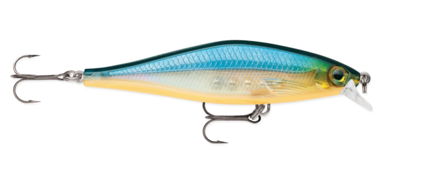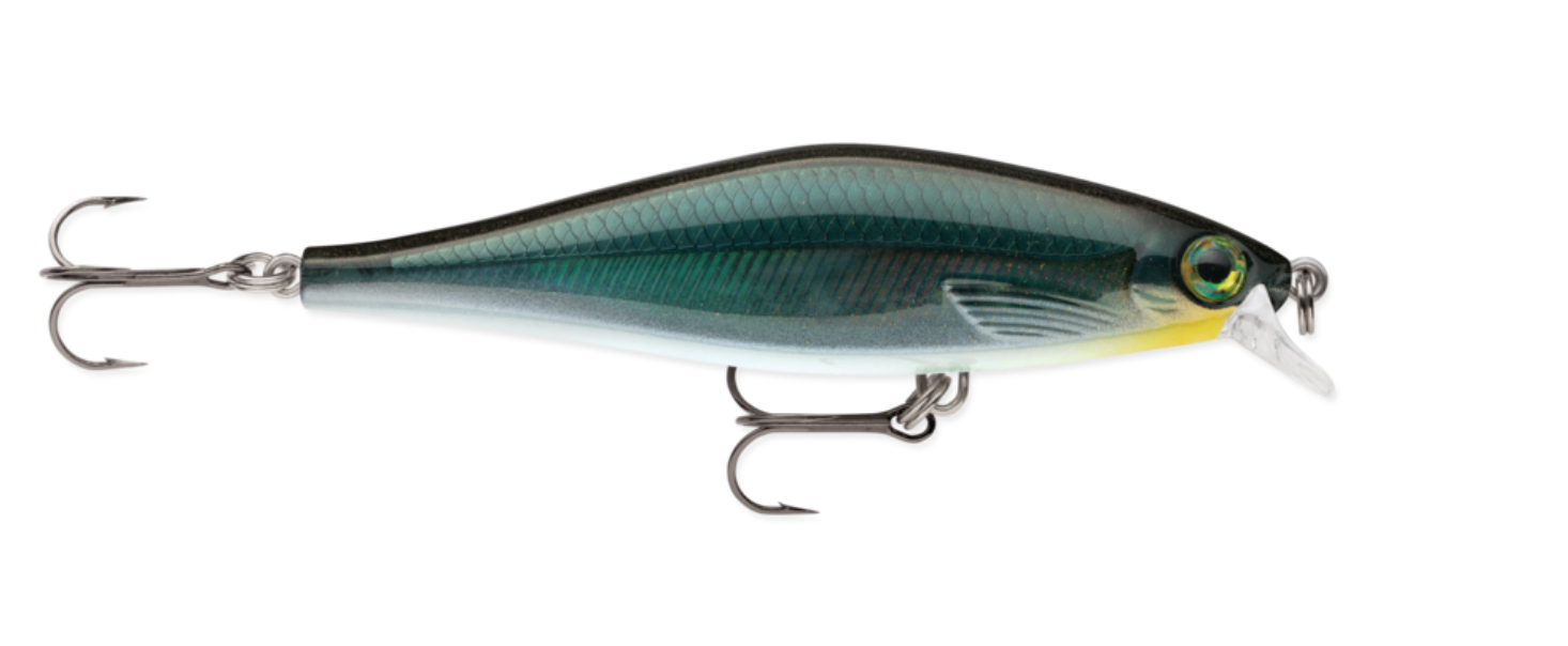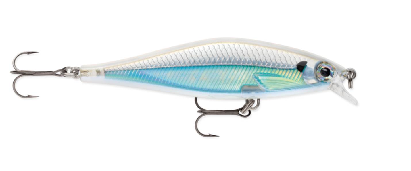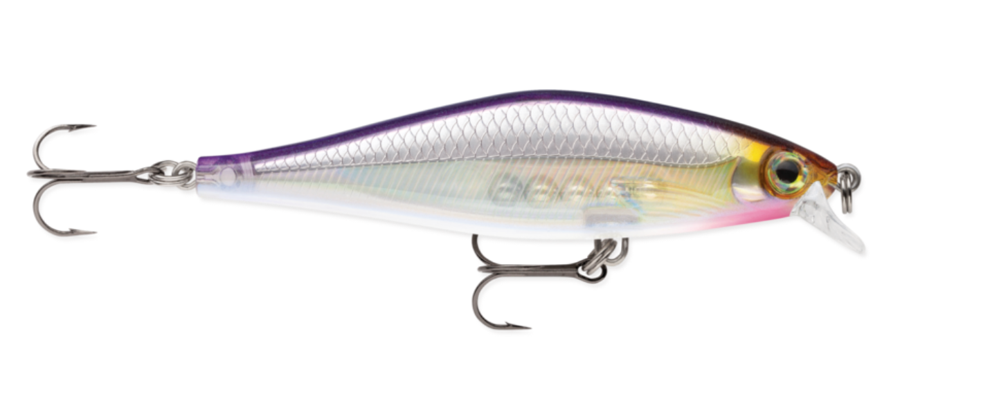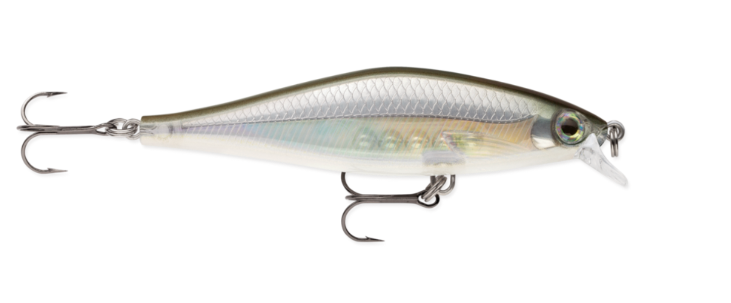 Big fish can't resist the tantalizing, slow-rising action of new Shadow Rap Shad. Swimming with the infamous horizontal struggle with a vertical "rise" on pause, they perfectly mimic a shad in trouble. Larger profile presents more flash and the option to fish from a finesse to more aggressive retrieve. Tie one on and see what monsters are hiding in the darkness. IT'S ABOUT THE STRUGGLE - Kicking almost 180 degrees right then left, with very little forward travel, it stays in the strike zone. HEAD UP ATTITUDE - Head up, ready to rise, the fixed weight system allows lure to rise slowly like a dying shad. SLACK LINE LOOK BACK - After a sharp snap and generous slack line, it will actually spin around and look backwards.