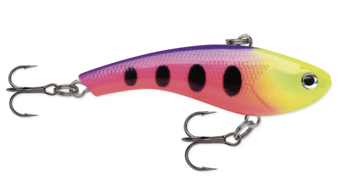 With quick rod snaps the Slab Rap® searches in wide, erratic directions, circling back to center after pause. Lift-drop motion creates subtle vibration on rise, followed by evasive side-to-side motion on the fall. Weight forward design enables a rocking action for triggering negative fish.