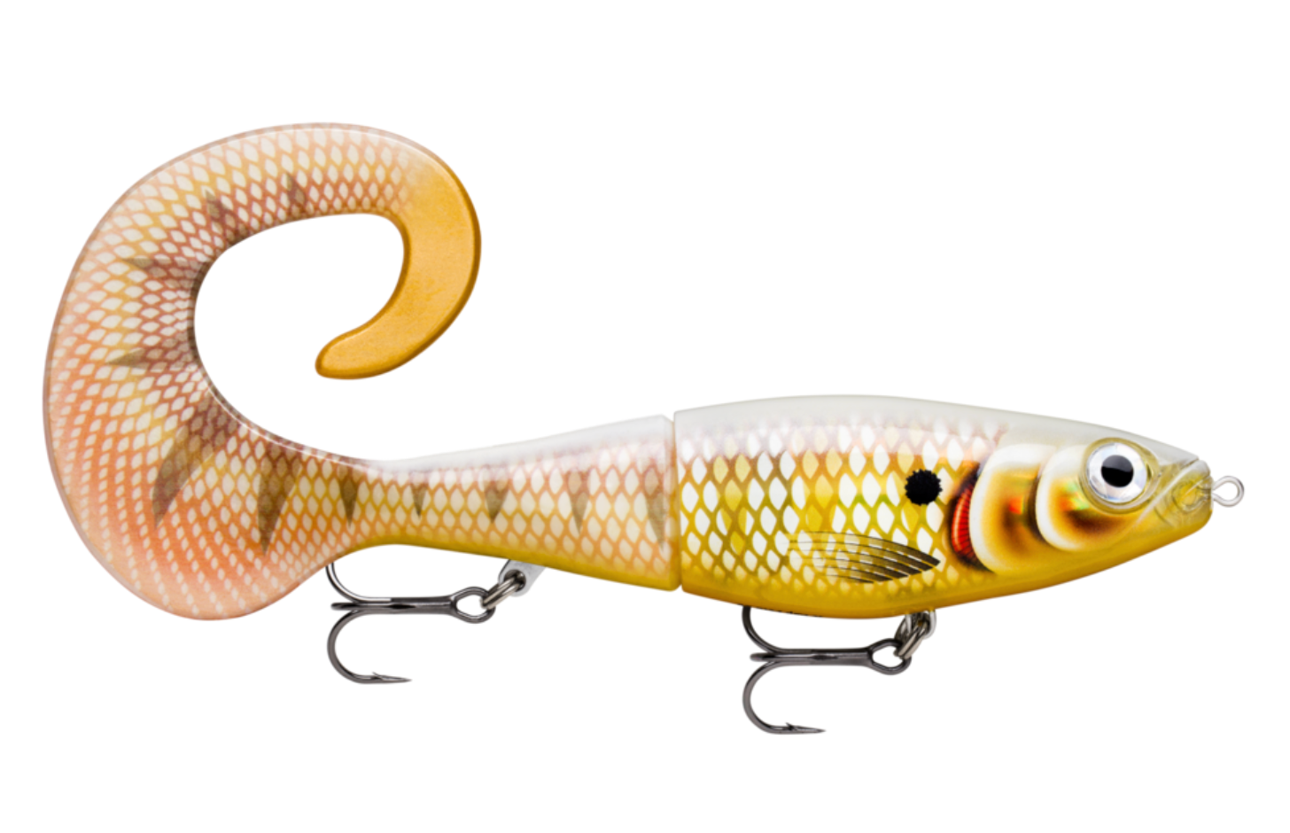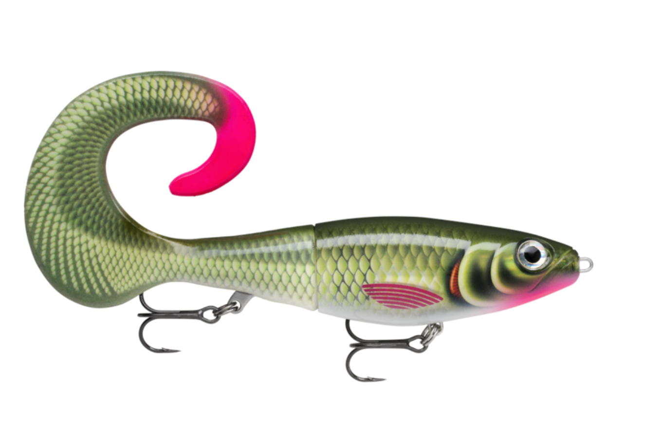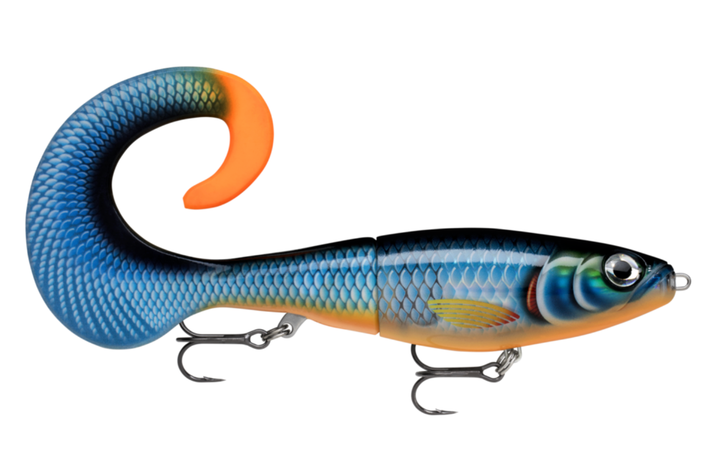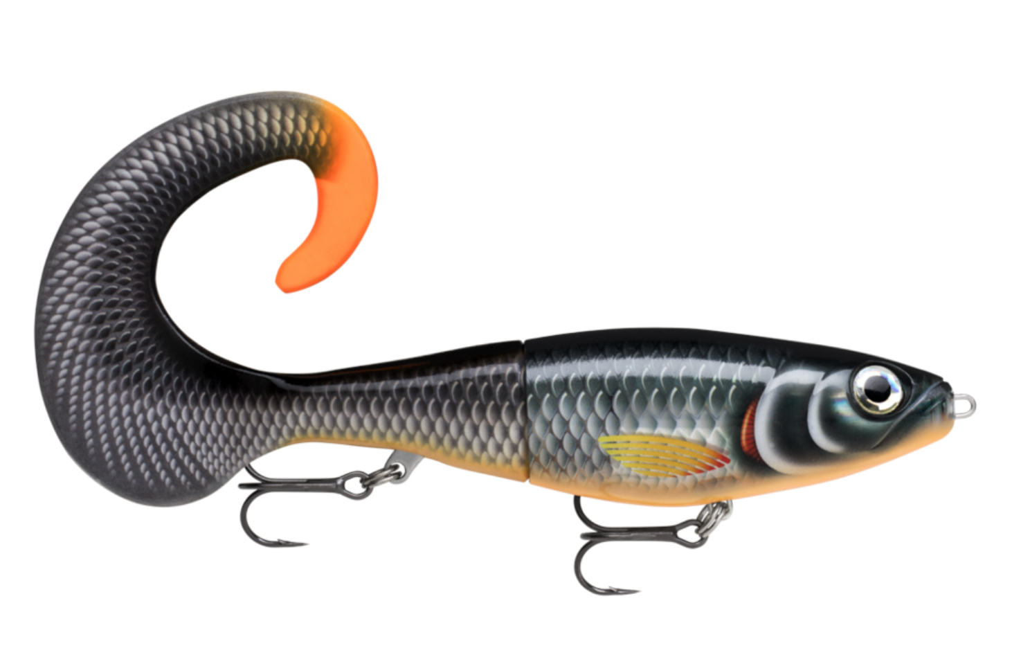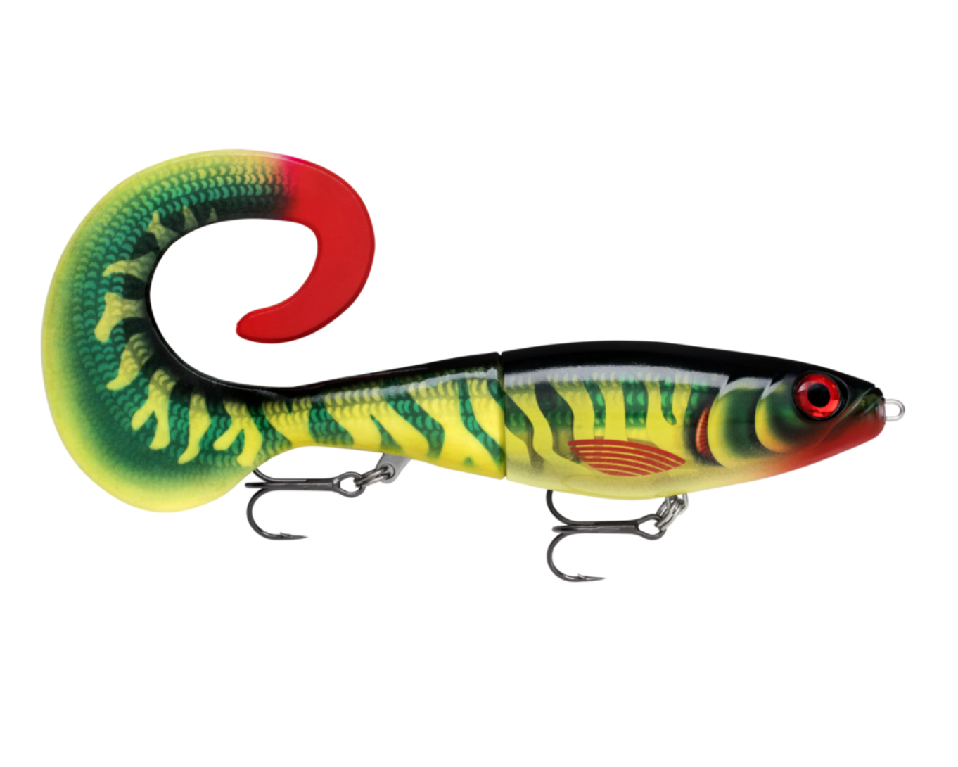 A formidable creature, the X-Rap® Otus, combines Rapala's fish-catching X-Rap® construction with a beautifully color matched curl tail to create a seamless hybrid bait. With its slow sink rate and wide wafting tail, X-Rap® Otus is the ideal choice for cold water and challenging conditions. The body rolls side-to-side as the enormous curl tail pulses behind when retrieved. When paused, the tail acts as a parachute, stabilizing the lure as it slowly swims into the depths. The soft tail is firmly secured to the body with a 6-point stainless plate. Replacement tail included. Fitted with VMC® Coastal Black hooks.