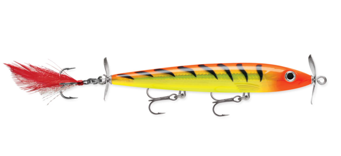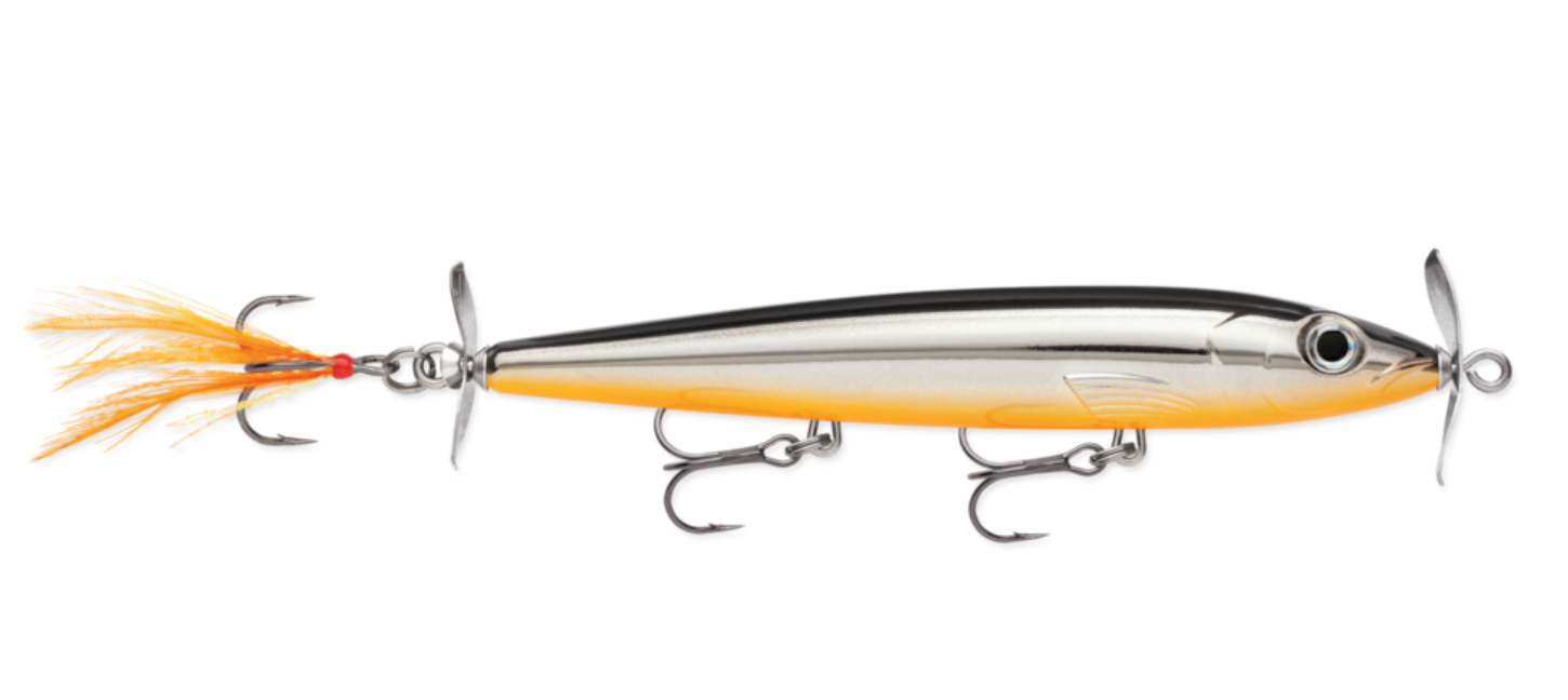 The X-Rap® Prop marks the X-Rap family’s entrance into this productive category. Simply by adding X-Rap Attitude we have taken a good bait and made it great. Stainless Steel Props create X-size noise and splash, churning, spitting and gurgling with the slightest tug. Whether you’re fishing a snap and pause, straight or shredding retrieve, the counter-rotating blades ensure a straight track back to the boat. Tail drops down during pause allowing better hooks up. X-Rap finish with internal laser-etched scales and holographic foil create an impressive flash. Internal long-cast mechanism lets you cast into the most timid fish from far away, without spooking them with your boat. VMC® black nickel hooks all around with flash feather teaser tail on the stern. Hand-tuned and tank-tested to run straight and true right out of the box.