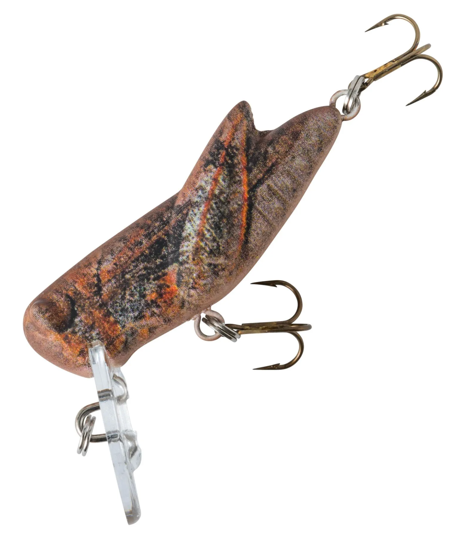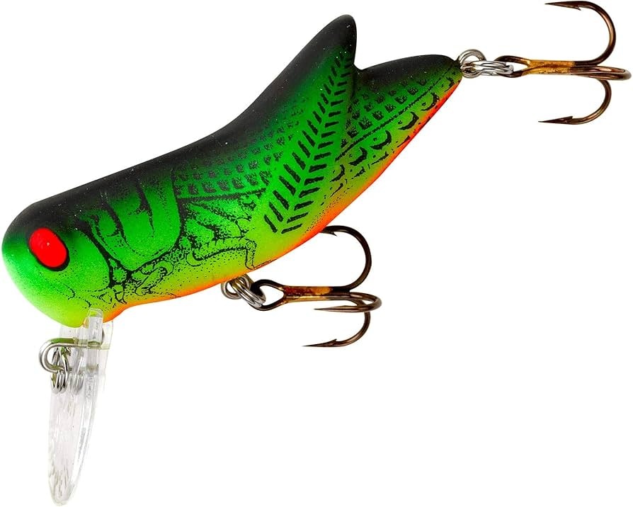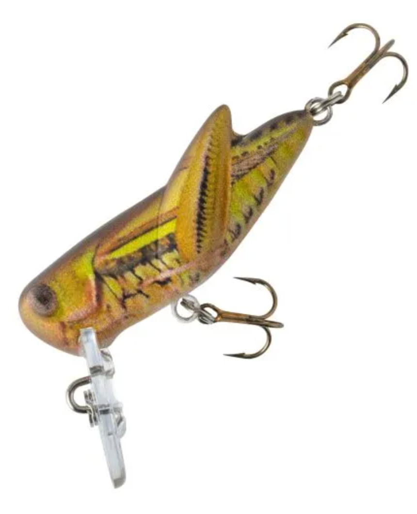 The Rebel Crickhopper is a big bite for summer and fall bass, trout and other gamefish. The most realistic grasshopper crankbait you can find, the Crickhopper is a tremendous lure when twitched on top, but for trout anglers, a straight medium retrieve proves effective in tailraces or lakes. Awesome profile and super-realistic paint jobs that accurately mimic a real grasshopper.