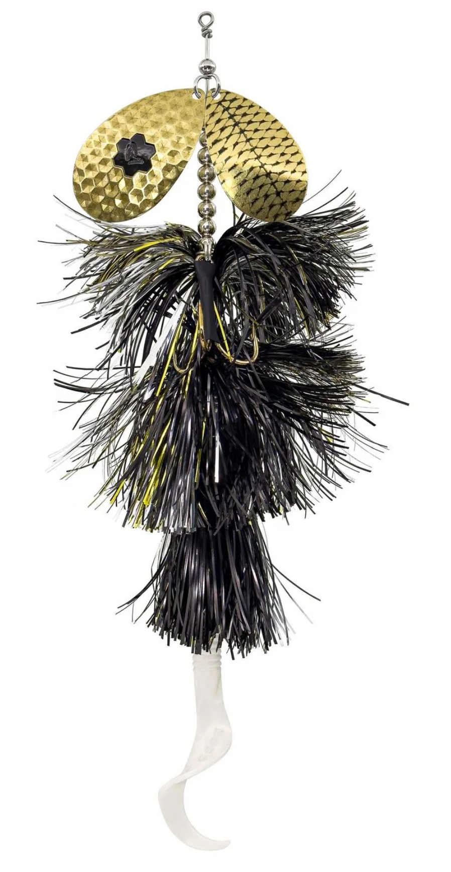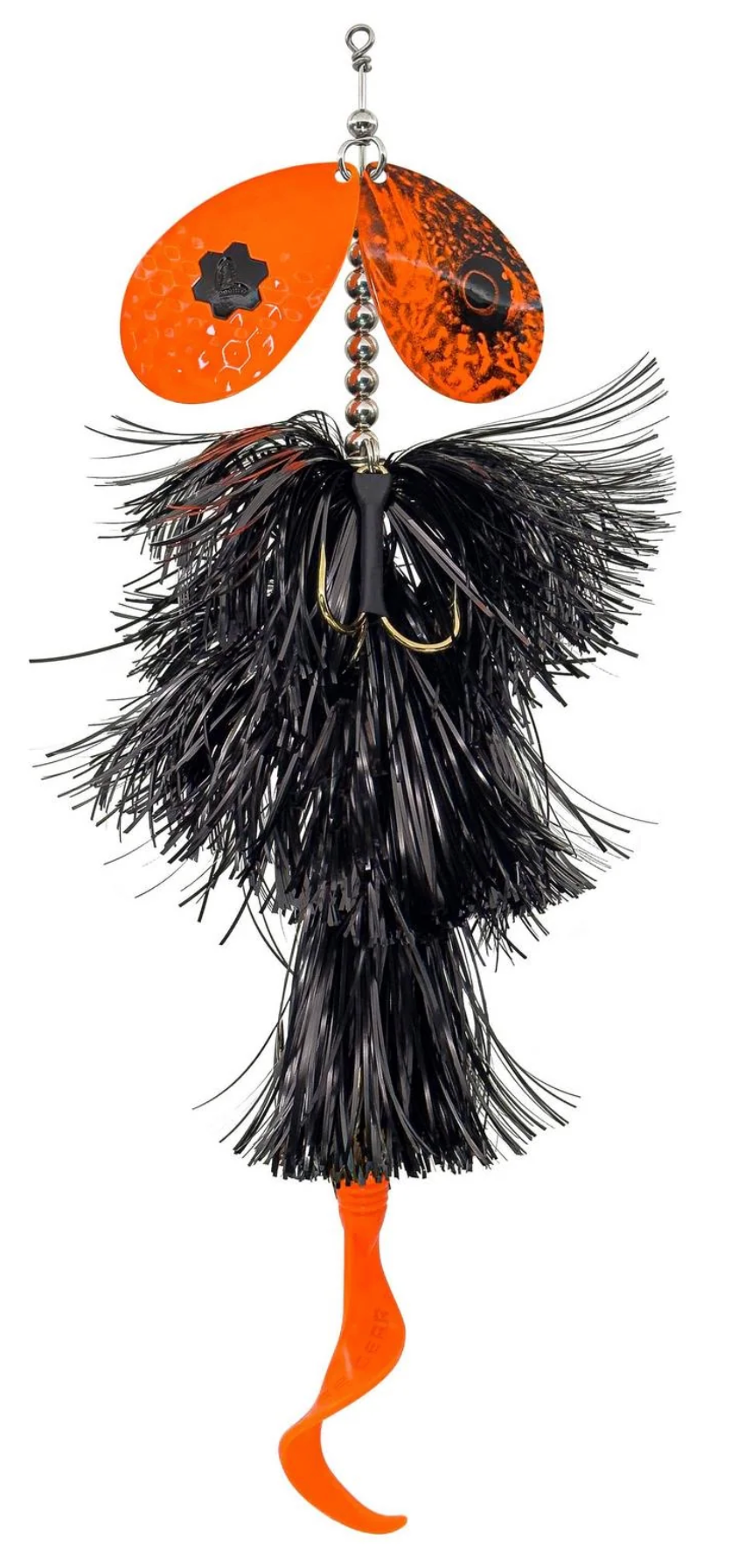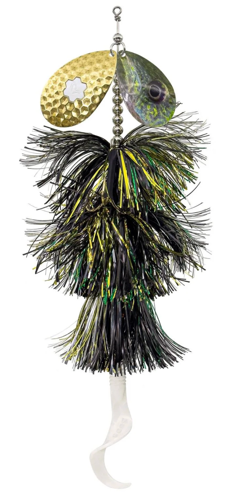 Unleash the Savage Blade! Our custom designed bucktail is built with high grade custom components and crafted to perfection! The custom blades fold in flight and rotate immediately on retrieve so you don’t waste an inch of your cast. Their custom design sends out big pulses and vibration to draw in huge fish. The clever configuration, with the detachable weight allows you fish over the weed tops or deeper over structure and rock piles. Our hand-tied Skirts, have the perfect volume, to create a big pulsing silhouette and still collapse perfect on the strike. The custom carbon steel 3X tail Treble hook, has a Stainless steel corkscrew with a pre-mounted scented Trailer tickler grub tail, raising many fish to follow and strike.