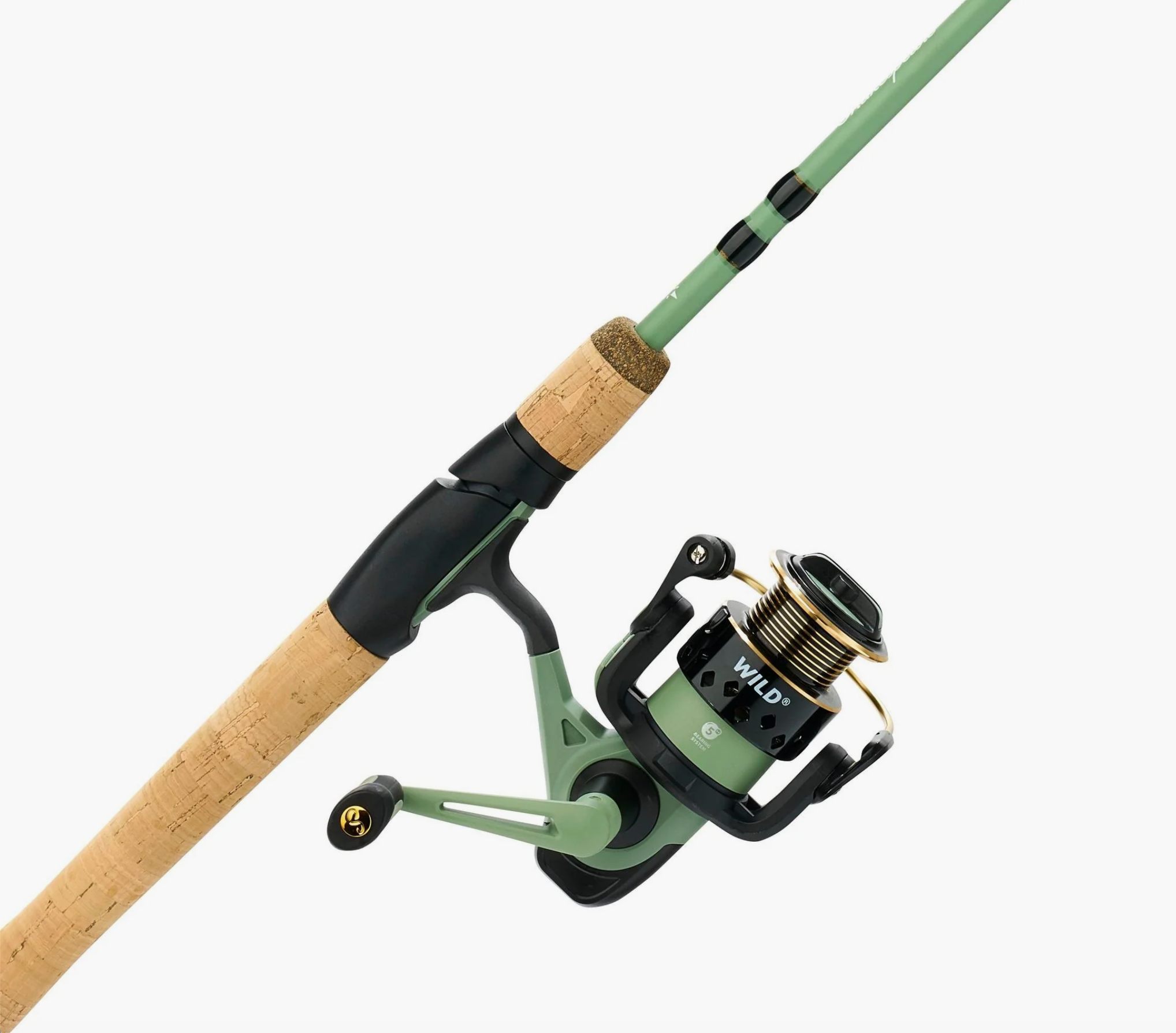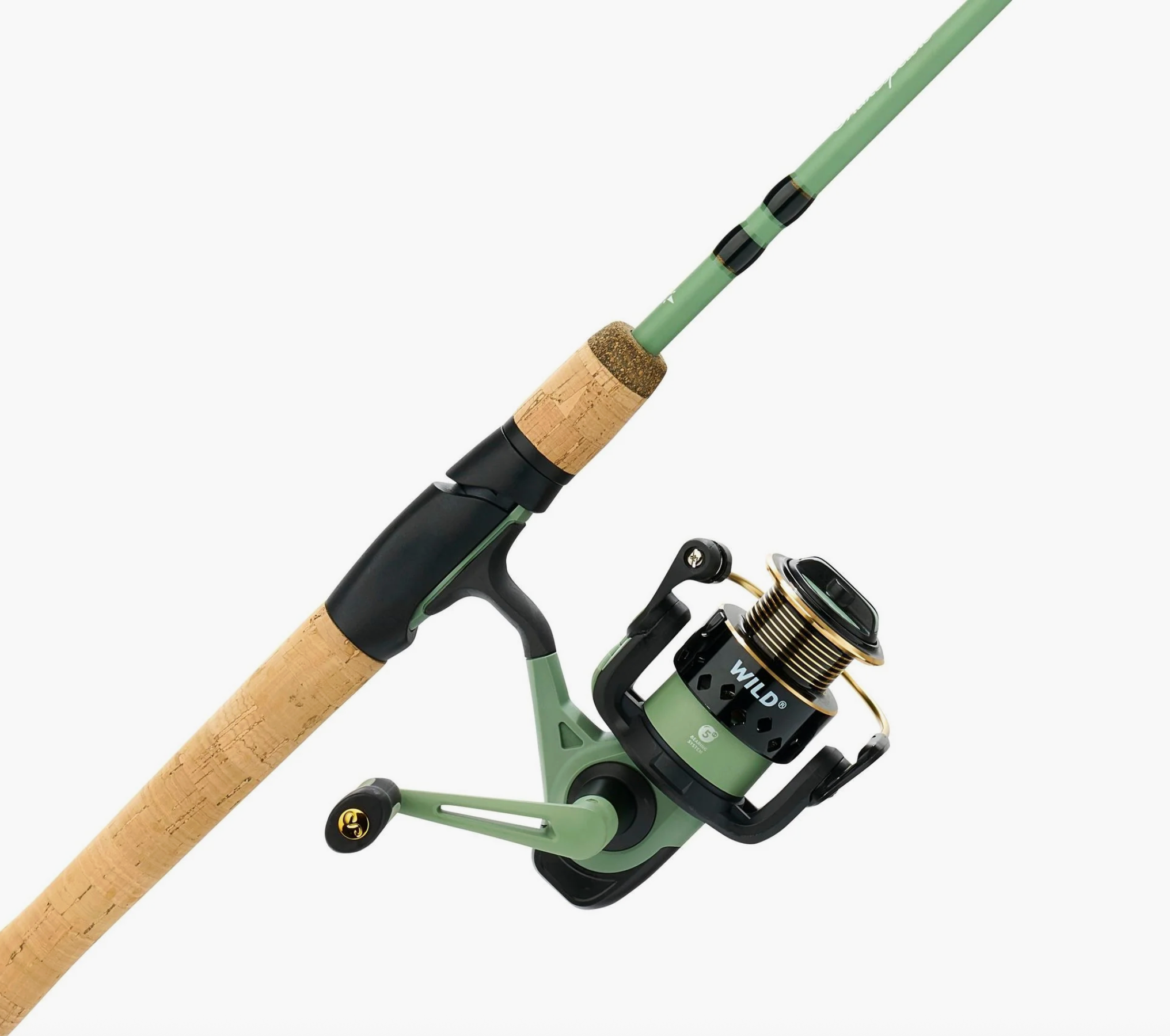 Shakespeare® Wild Spinning Combos offer a specialized assortment of Panfish, Walleye, Trout, Salmon, Steelhead, and General Purpose options. 4 ball bearings + 1 roller bearing provides smooth reel operation and hand feel. An aluminum spool and handle arm are utilized for increased strength and lightness. Innovative molded reel foot and handle knob soft touch grips enhance comfort and precision. Wild Spinning Rods utilize 70% carbon composite blank construction and stainless steel guides with stainless steel inserts to deliver performance where anglers need it most. Rods feature premium cork handles for enhanced comfort and feel.
