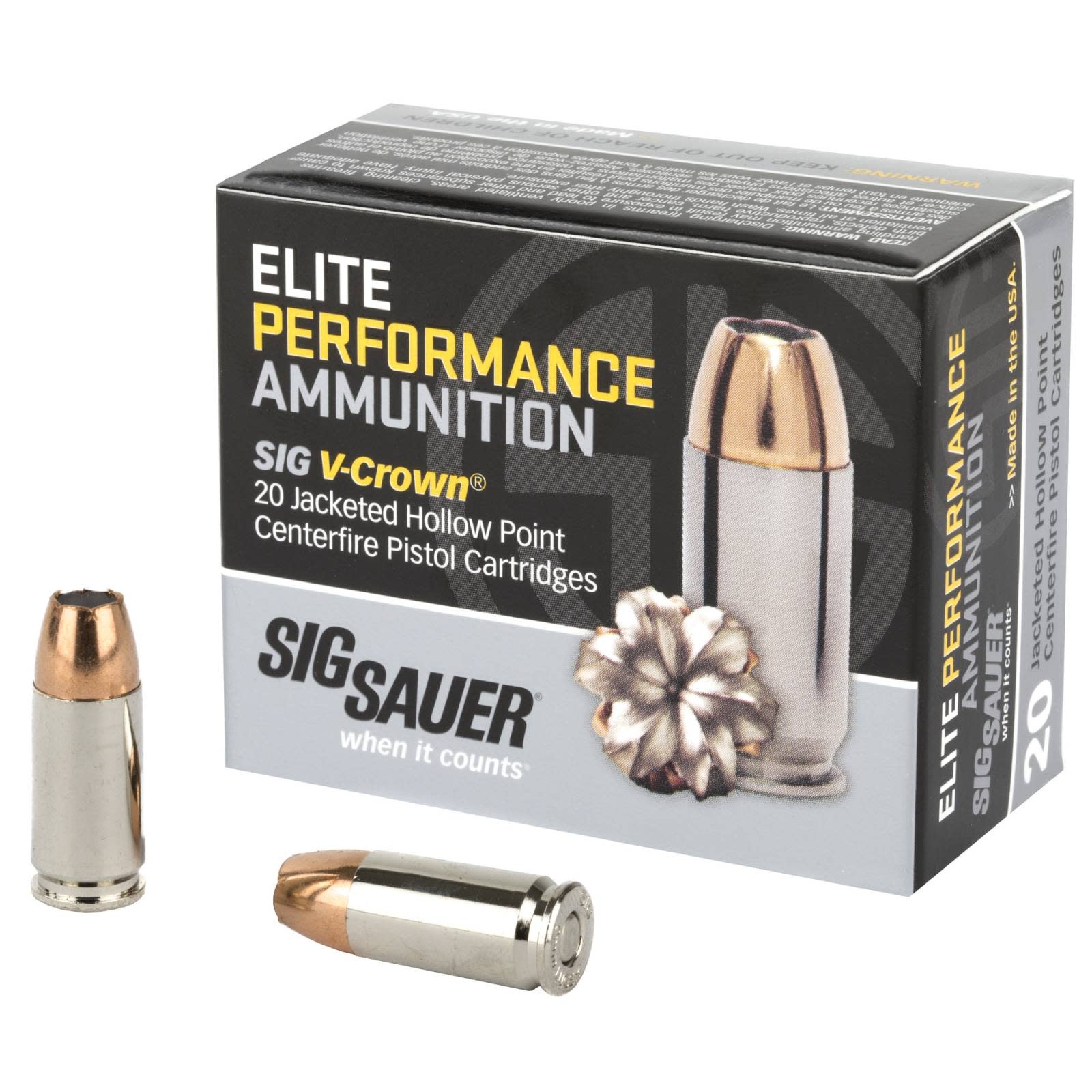 Sig Sauer V-Crown Pistol Ammo 9MM, JHP, 115 Gr, 1185 fps, 20