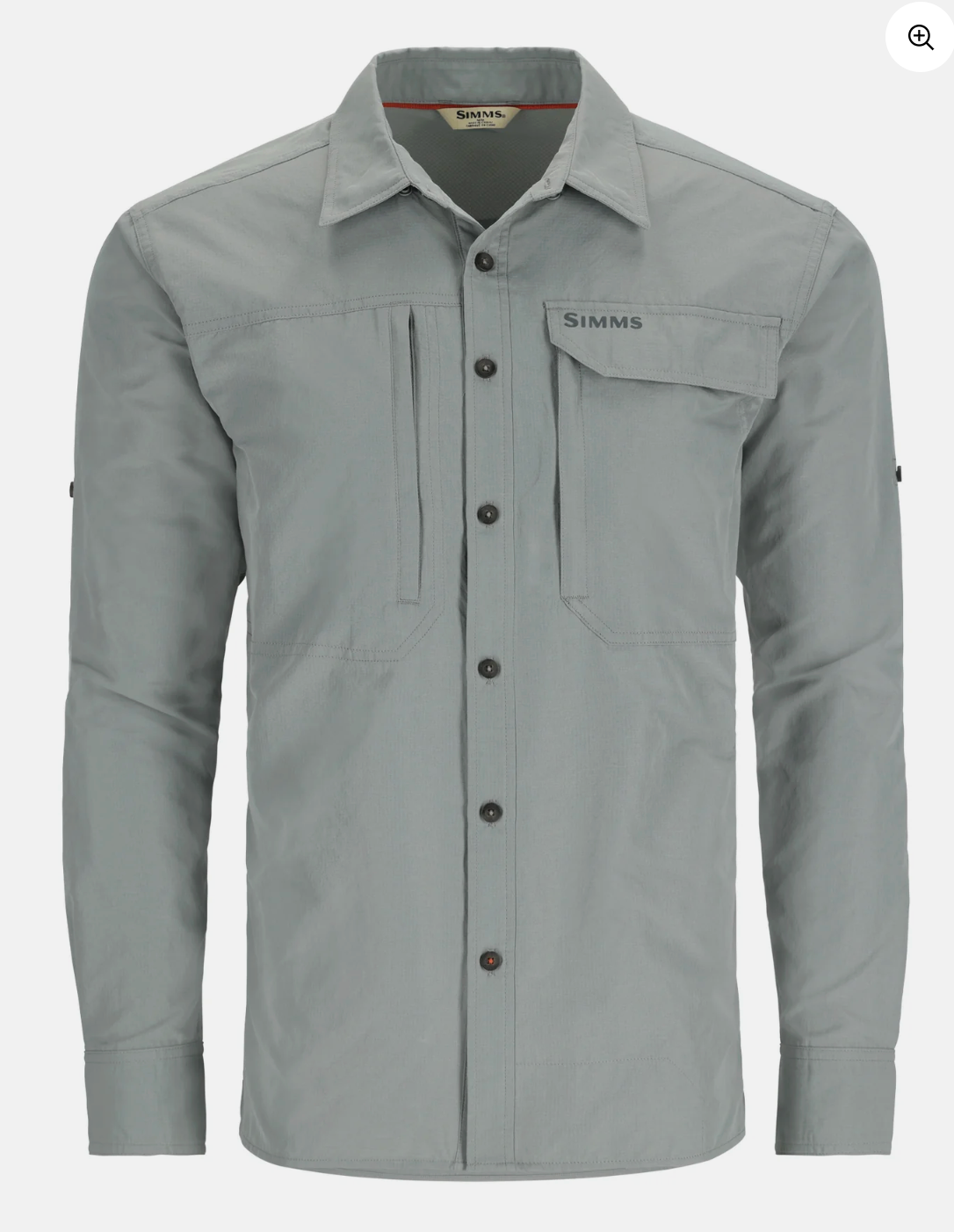 • Quick-drying, wicking, & UPF 50+ Rating• Built from our trustworthy and proven poly-nylon ripstop blend, this woven fast-drying fabric has protected our anglers from the sun for over a decade• Classic point collar for a crisp look and casual feel, center back locker loop and button-front closure. Finished with shirttail hem, self-fabric side seam gusset and convenient sunglasses chamois• Left chest drop-in pocket with welt closure, stacked with a bonus hidden zippered pocket. The right chest pocket closes with a vertical zipper. Pockets are lined with mesh for water drainage and quick drying.• The back yoke extends over shoulders for enhanced stretch and mobility, finished with a back vent for comfort in hot, humid weather• Adjustable, roll-up set-in sleeves secure with button closures. Cuffs designed for back-of-hand sun protection.