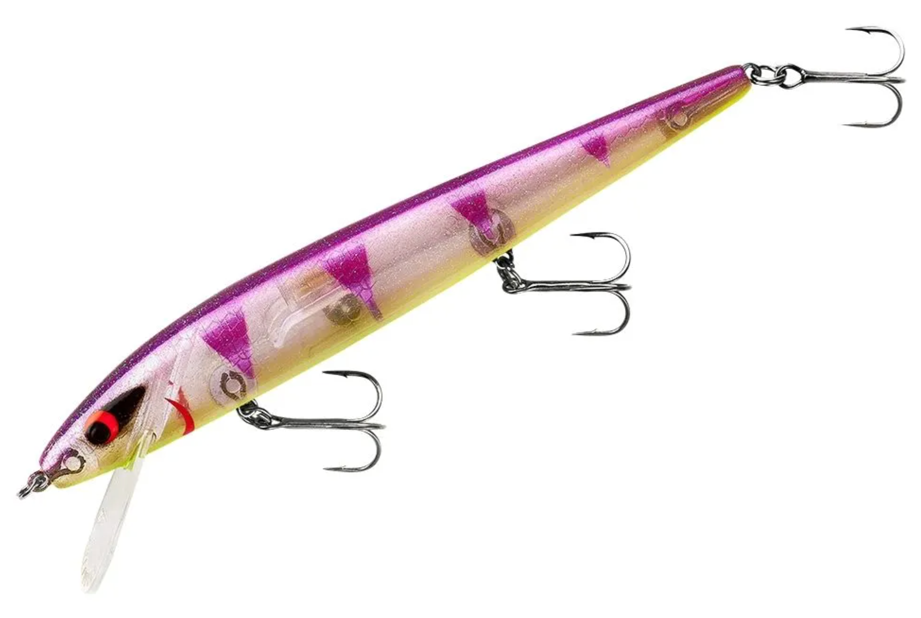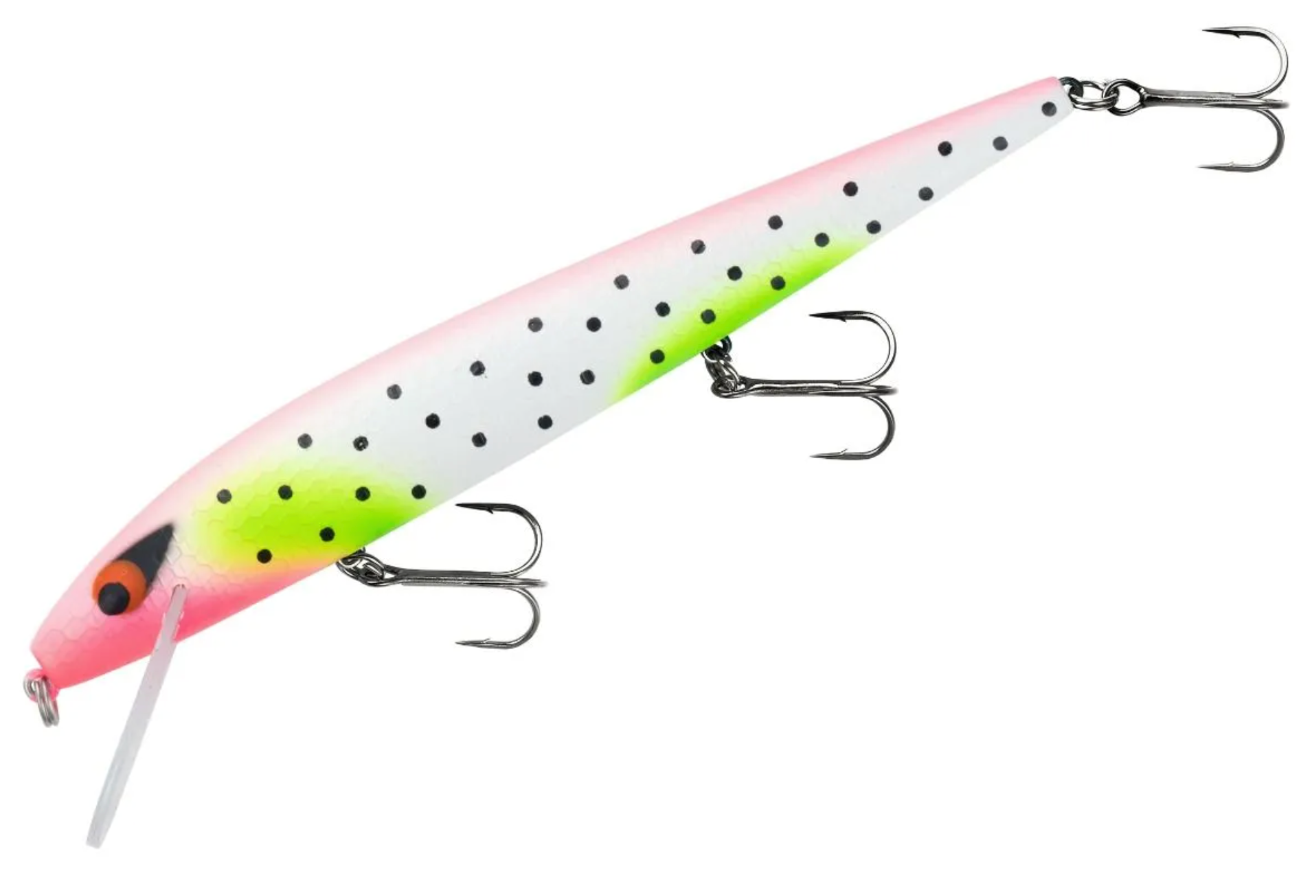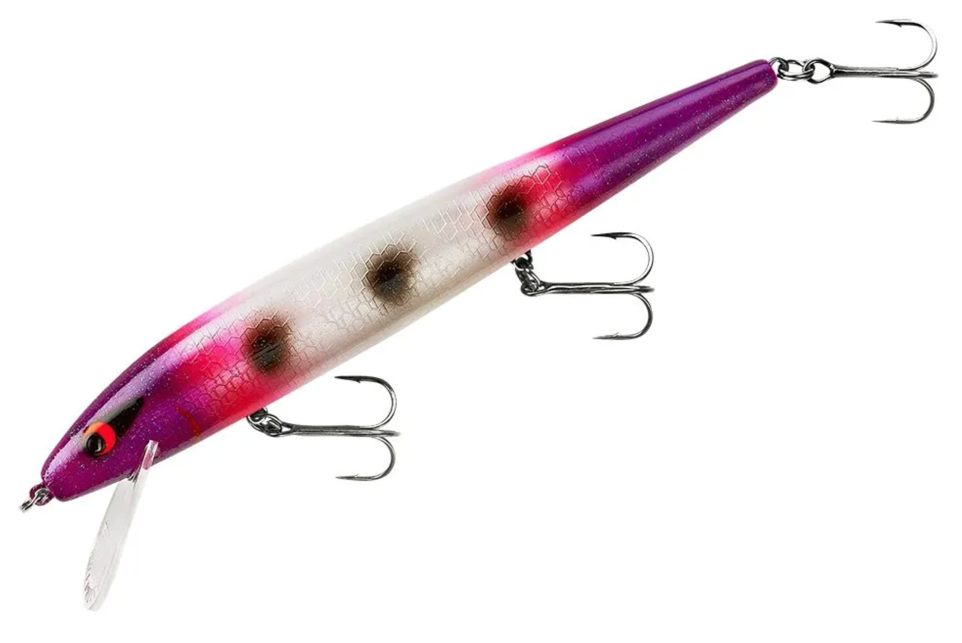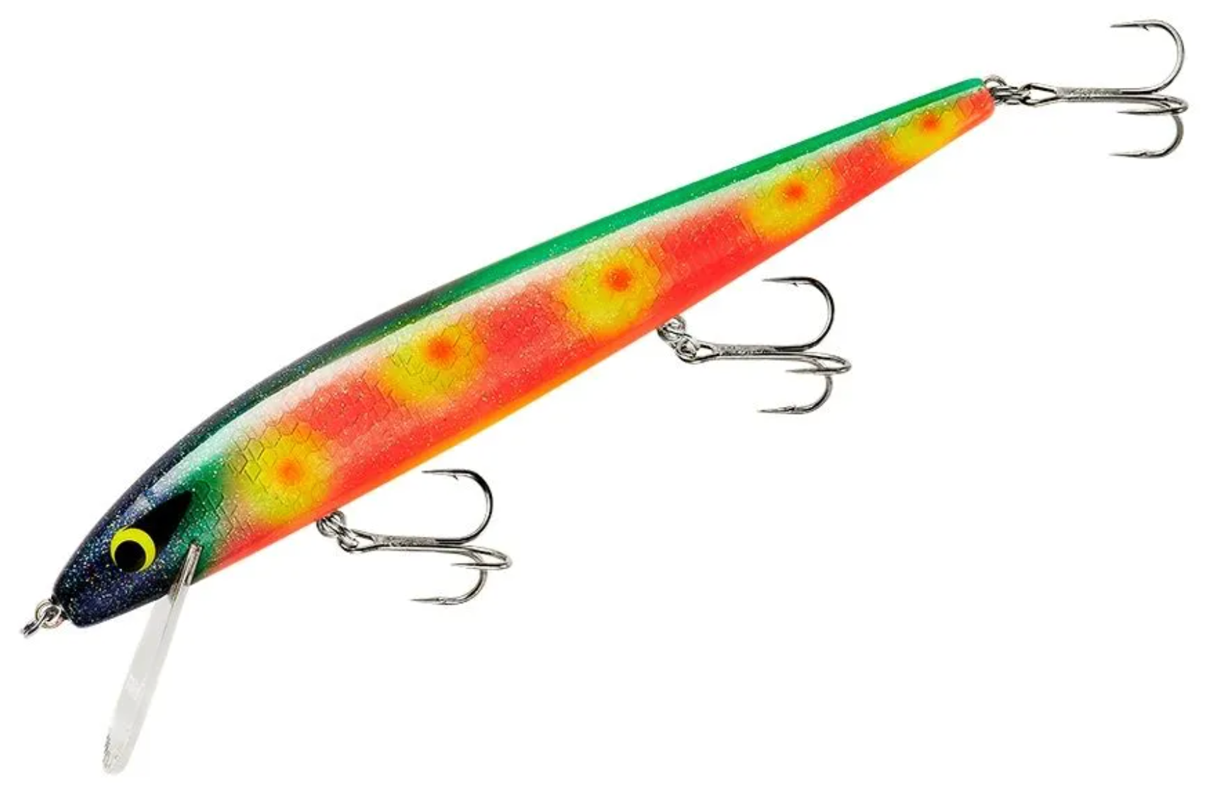 The Smithwick Perfect 10 Rogue dives when twitched and produces that deadly “Rogue Roll” that has been the downfall of so many gamefish. (The Rogue Roll is unique to this jerkbait and describes the way the bait rolls side-to-side while swimming to produce a baitfish-like flash that attracts fish from a distance.) The Perfect 10 dives quickly to 10 feet, and new translucent color patterns are more effective in clear water. Plus, it’s got that fish-catching tungsten rattle that fish – and fishermen – have been searching for. In addition to being a proven bait for casting-and-twitching, the Perfect 10 has made quite a name for itself when trolling for walleyes in the Great Lakes and other northern waters.