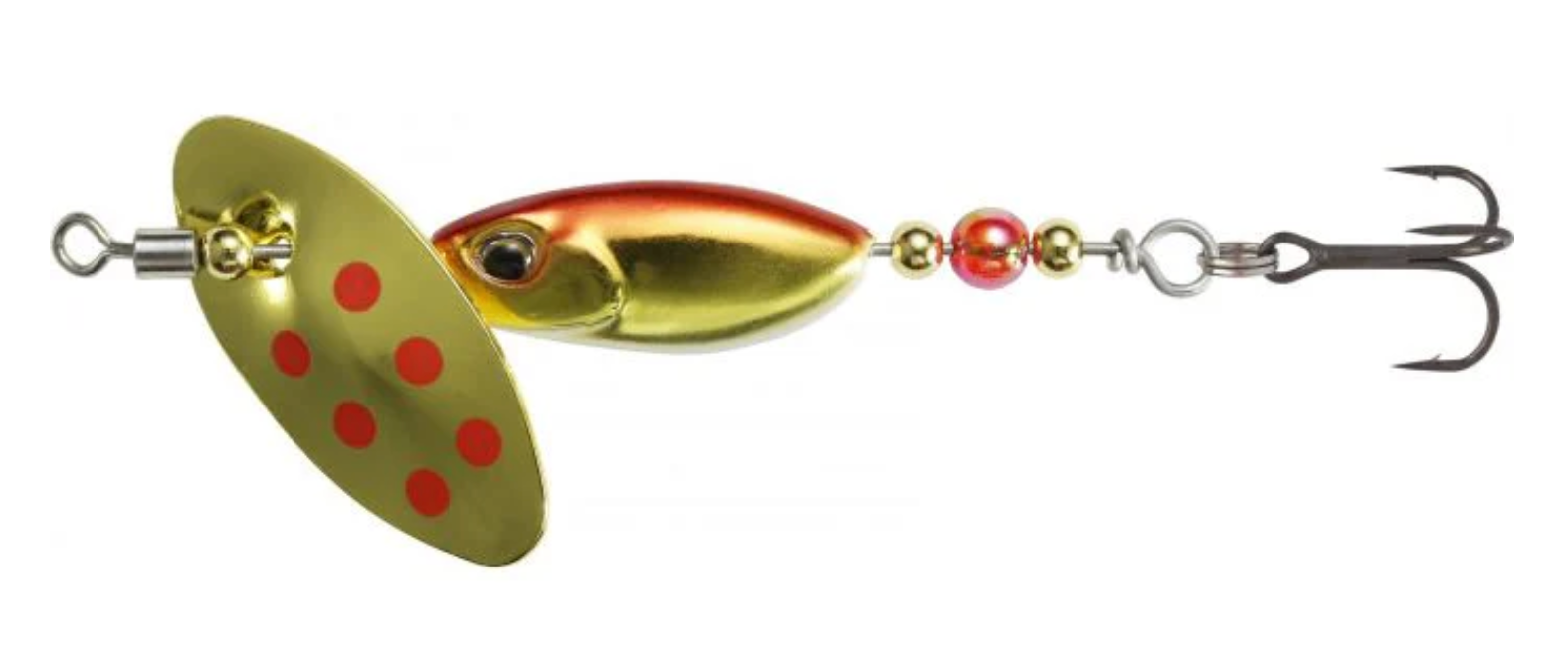 Equipped with a baitfish type body weight that enables long distance casting! The rolling shaft reduces thread twist, which is a weak point of spinners. The in-line blades, which are easy to absorb water, produce good start-up, and the unique body shape suppresses floating, making it possible to use not only in scattered pools and places with slow flow, but also in points with strong currents and strong currents.