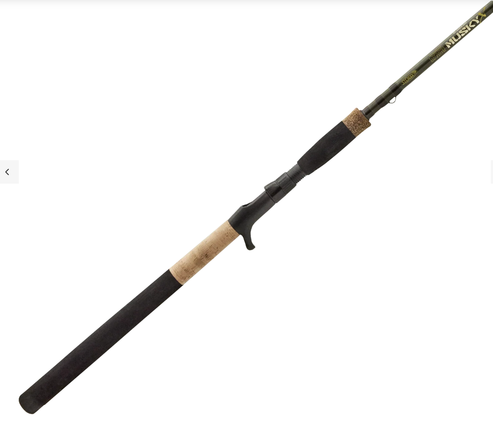 The St. Croix Musky X Casting Rod offers the strength, balance, and control musky anglers need to handle heavy baits and aggressive strikes. Built on premium SCII carbon fiber blanks enhanced with Fortified Resin System (FRS), the rod maintains excellent flexural strength while keeping weight to a minimum. Lightweight black stainless-steel guides with aluminum-oxide rings deliver smooth, consistent line flow for long-distance casting. Anglers can choose between split-grip models featuring progressive EVA handles for better control and fatigue reduction, or full-grip configurations that combine premium EVA and cork with an extended EVA foregrip for added leverage on figure-eights and hard-fighting fish. A durable palming-style nylon reel seat with a stainless-steel hood and locking nut keeps reels secure through demanding retrieves. The Musky X gives serious musky anglers a dependable tool for throwing large baits and controlling every battle from cast to net.