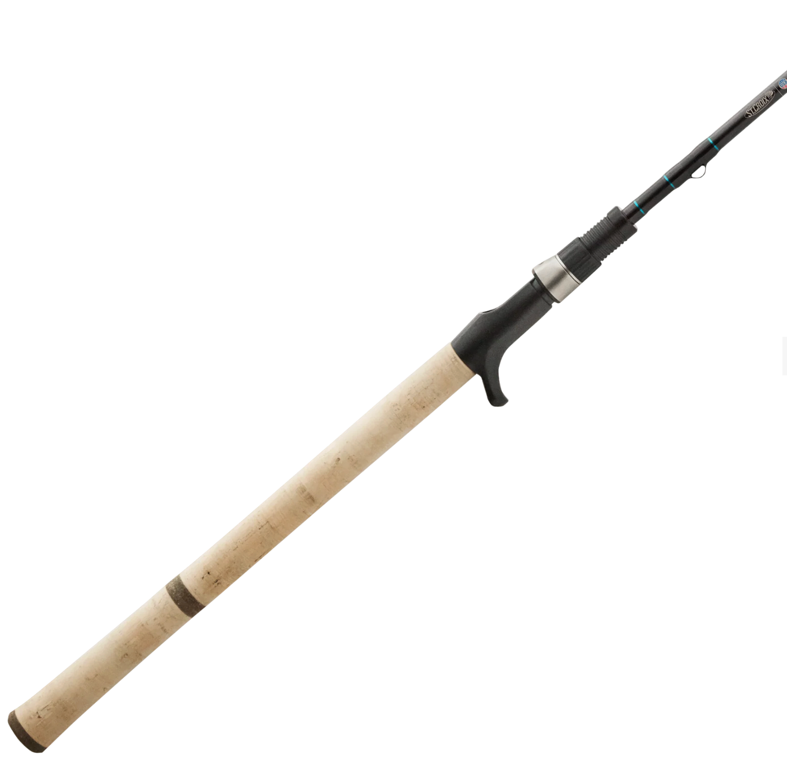 The St. Croix Premier Musky Casting Rod offers the power and responsiveness needed to throw large baits and handle aggressive follows without sacrificing balance or sensitivity. Built on premium SCII carbon fiber blanks reinforced with Fortified Resin System (FRS), this rod delivers impressive strength while keeping overall weight low for long days of casting. The inclusion of St. Croix’s Taper Enhancement Technology (TET) refines the rod’s action, enhancing both casting accuracy and lure control with a noticeably smooth, responsive feel. Outfitted with lightweight, tangle-free stainless-steel K-style guides and durable aluminum-oxide rings, the Premier Musky Rod maintains line flow and control under heavy loads. A premium-grade full-cork handle with cork-composite accents offers a secure grip, and the nylon reel seat includes a locking nut and stainless hood for solid reel placement and long-term durability. This rod brings a proven blend of strength, precision, and control to musky anglers who demand consistent performance from every cast to every figure-eight.