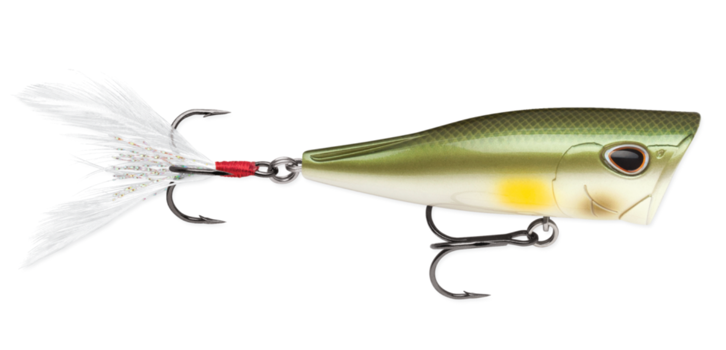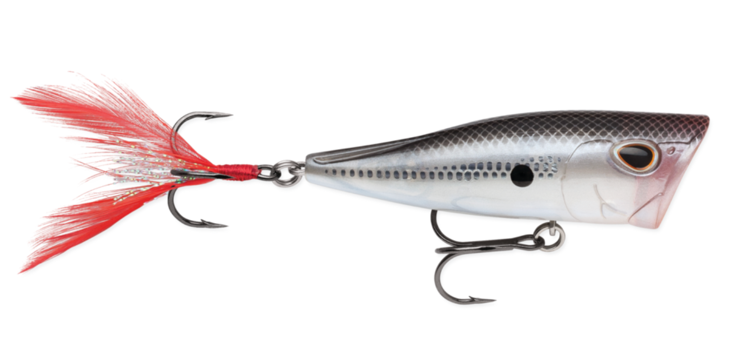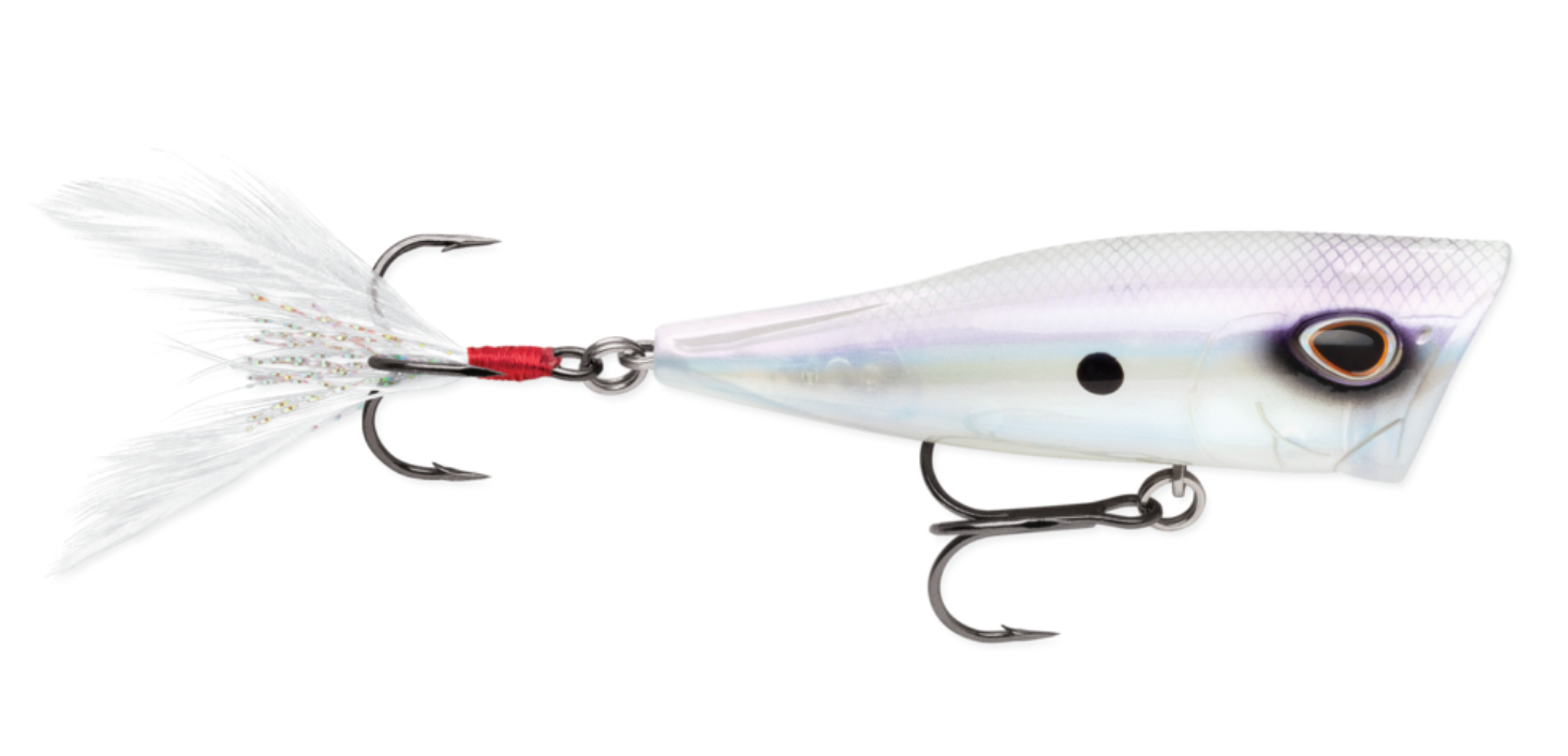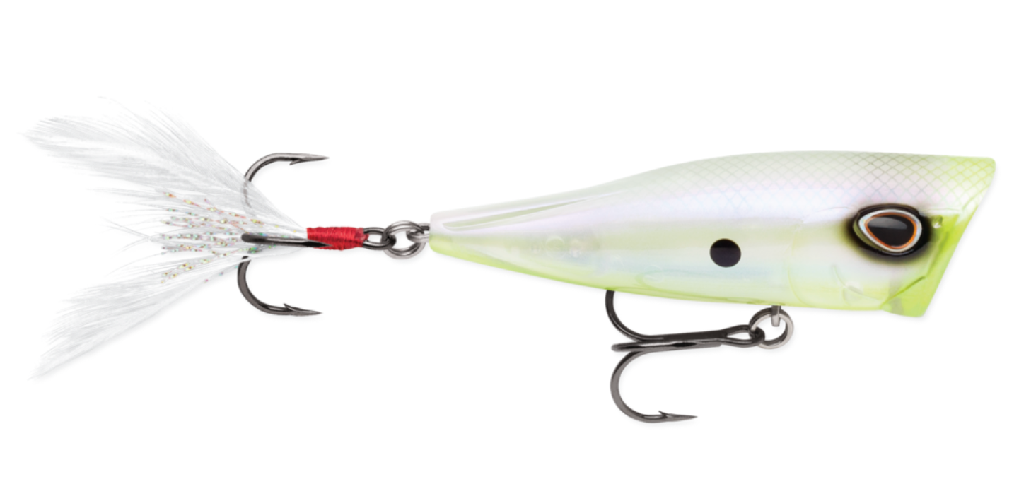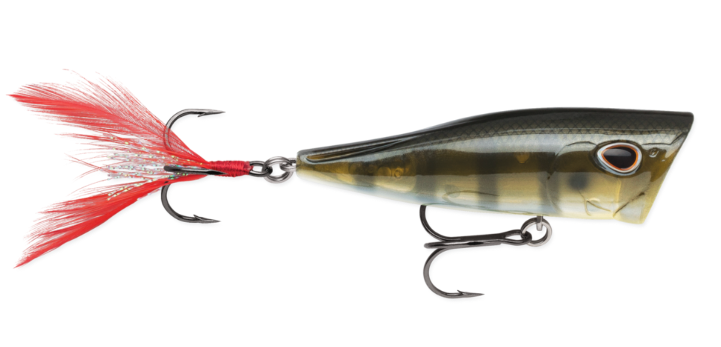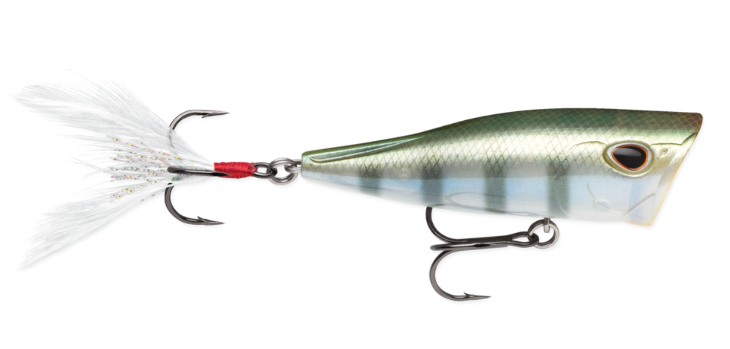POP, SPLASH, AND CHUG. The Arashi® Cover Pop travels with minimal forward movement to maximize the time your lure spends in the strike zone. Emulates prey struggling on the water’s surface. Ideal lure for target fishing. Work close to laydowns, docks, rocks and anywhere else bass would hold on.Aerodynamic shape and extra tail-weight provide increased casting distance and accuracy and allows the lure to enter the water tail first with minimal splash and sound. Rotated Hook Hangers nest the hooks close to the body for improved action even with the larger hooks. VMC® Black Nickel hooks with flash feather teaser tail seal the deal.