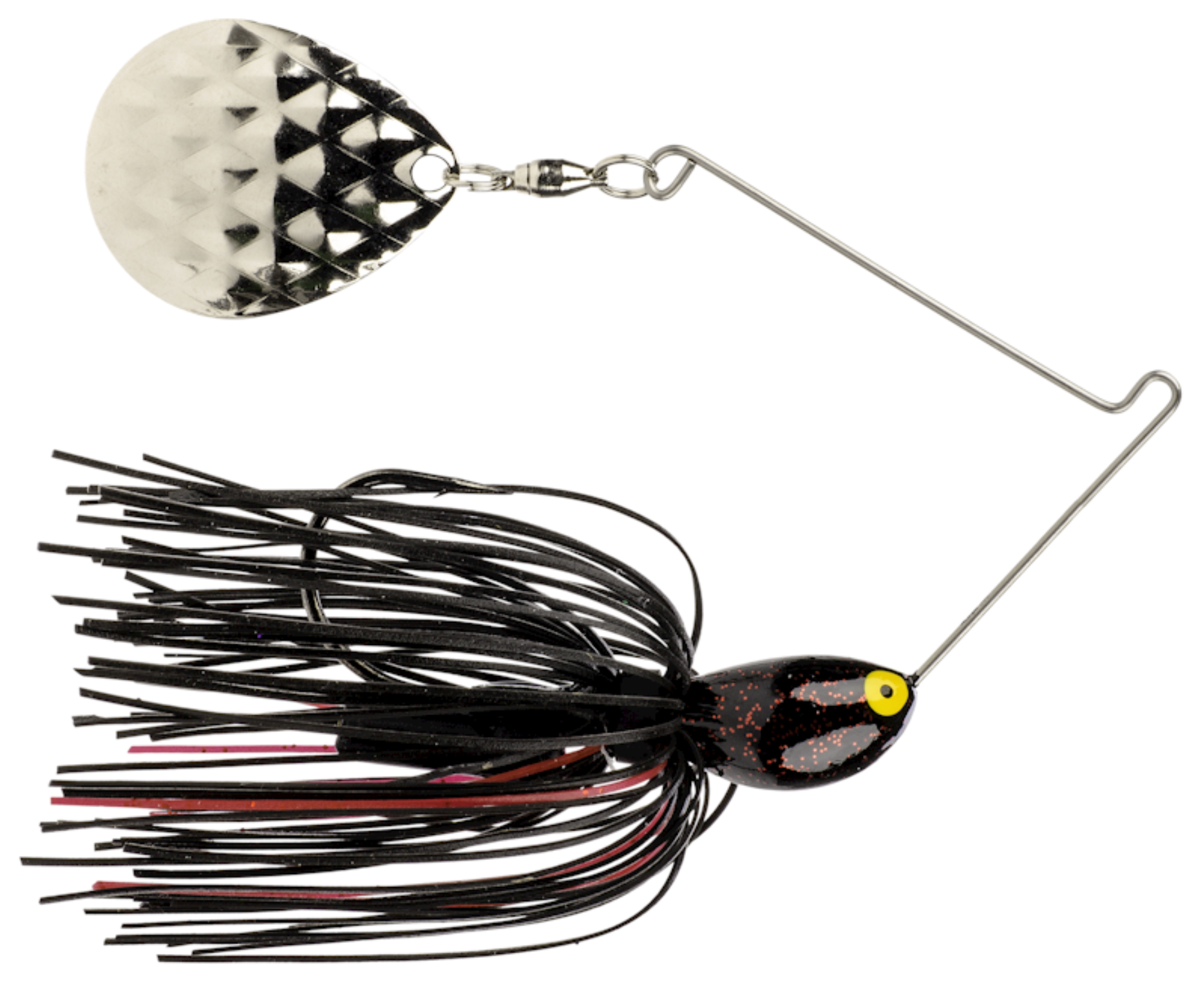The Strike King® Rattlin' Midnight Special® Spinnerbait covers all the low-light bases. The short arm design increases vibration and puts the flashing blade right over the hook so fish strike at the right place. Built-in rattle and Spin-Eze ball bearing swivels are ideally suited for flippin' and pitchin'. The 7/16-oz. size comes in 2 single-blade styles to match your fishing situations: Diamond blade or Black Nickel blade. Diamond blade baits are equipped with Eagle Claw® Lazer Sharp® hooks; Black Nickel blade bait features chemically sharpened Mustad® hooks.