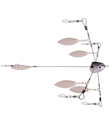 Rain or shine, this is the umbrella you need on the boat. Tie on the Tour Grade Umbrella Rig to target those early season pre-spawners and aggressive post-spawn schooling fish. Strike King®’s Tour Grade Titanium Umbrella Rig is a better rig than others. The five wire system is designed with a .027 diameter titanium wire that eliminates kinks, breakage and metal fatigue common with some steel wire rigs. The flexible titanium wire enables increased pulsing action for more strikes. The smaller diameter wire is less visible in clear water, creates less wind drag, making casting easier. The head with life-like 3D eyes features an internal swivel to prevent line twist.
