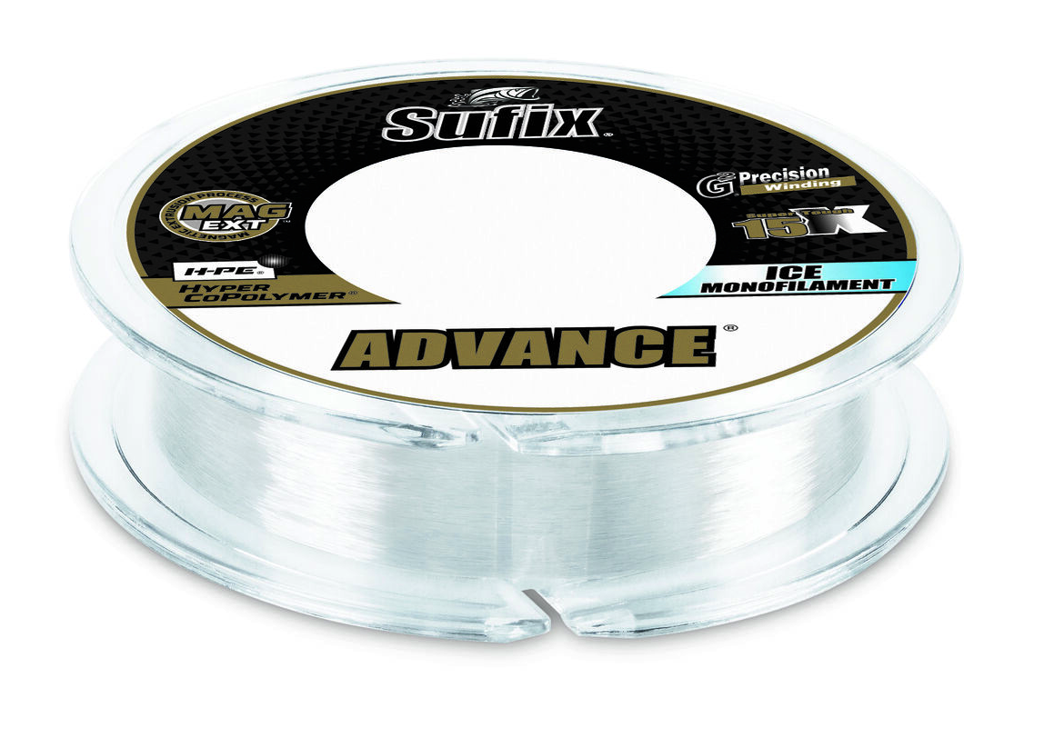 The mono that thinks it's a braid™ is now on ice! The most abrasion resistant, supple and sensitive monofilament ever. Sufix® Advance™ Ice Monofilament is a combination of HMPE and Hyper CoPolymer™.