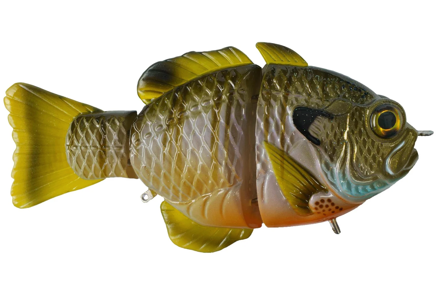 Engineered with a realistic profile and three body segments, the Artisan Gill Swimbait features a slow sink while exhibiting a natural S-shaped swimming action that effectively draws in predators from surrounding areas. Ready for battle right out of the box, the Artisan Gill Swimbait includes BKK 3X #1 hooks on swiveling hangers to keep big bass firmly pinned with every surge and headshake. As productive as it is beautiful, the Synch Fishing Artisan Gill Swimbait will surely exceed even the loftiest expectations.