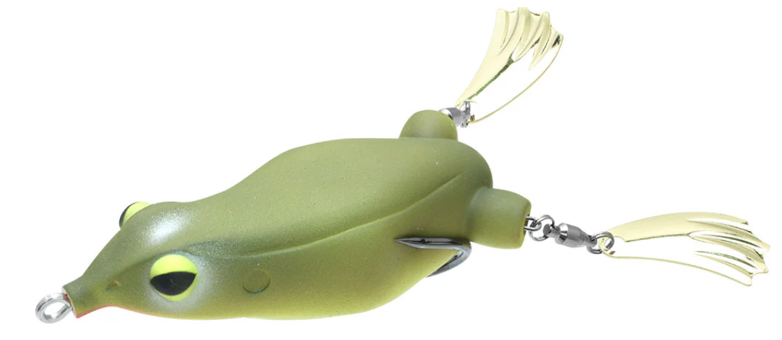 The Teckel USA Honker Frog features two metal feet attached at the rear of the bait using premium ball bearings. These metal feet generate a unique waking effect that is sure to grab the attention of bass lurking beneath the vegetation. Additionally, the Teckel USA Honker Frog also features a built-in weight that makes casting a breeze, and ensures that it won’t land upside-down. The combination of a razor-sharp Gamakatsu double frog hook and an extremely collapsible body gives the Teckel USA Honker Frog a strong strike-to-hookup ratio.