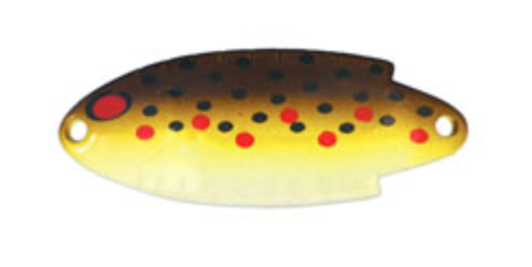 The Thomas Buoyant minnow is unsurpassed as one deadly trout and salmon lure! First issued a U.S. patent in 1946, the Buoyant is an erratic-action wobbler that imitates the darting motion of a frantic, fleeing baitfish. This action, combined with jewelry-quality finishes, creates a spoon that entices even the wariest of trout or salmon, and many other types of game fish, into striking. It is important to use a moderately slow retrieve or troll speed for the Buoyant to achieve its most effective action. An occasional sharp twitch of the rod tip can really draw hard strikes! Cast or trolled, deep or shallow, the Thomas Buoyant has been a favourite of successful anglers for over sixty-five years! Made in the U.S.A.