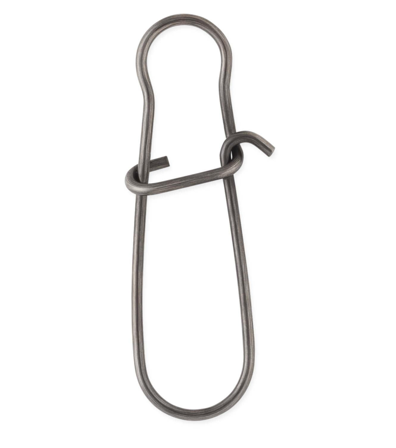 Stainless steel construction with black nickel finish. Snap can open at two positions for adding leader and/or lure.