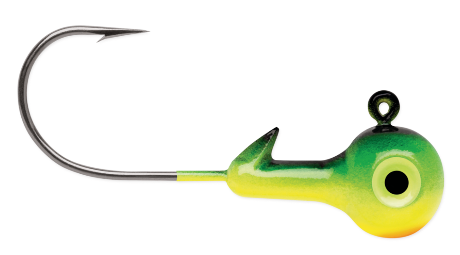 Premium Hi Carbon Steel hooks with Black Nickel finish feature a built in bait holder and make this the perfect round ball jig.