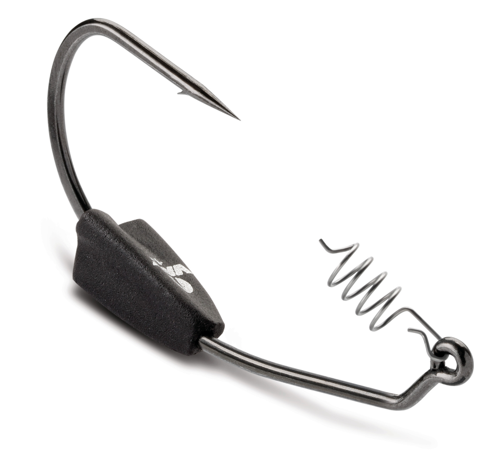 Pre-weighted design imparts just the right action to you swimbaits and eliminates the hassle of working with alternate weighting methods. Custom built for working swimbaits in open water and in cover, the Black Nickel Extra wide gap hooks feature a tapered locking spring that securely holds baits in place cast after cast, extending the life of your soft plastics. Spring design allows angler to easily add or remove bait without damage.