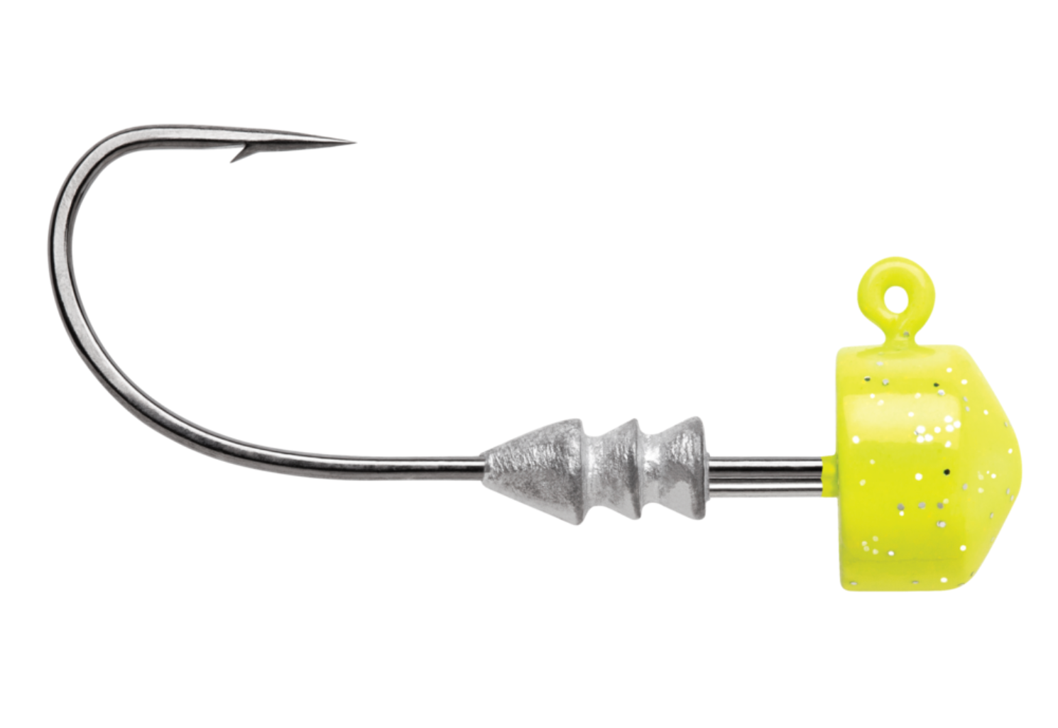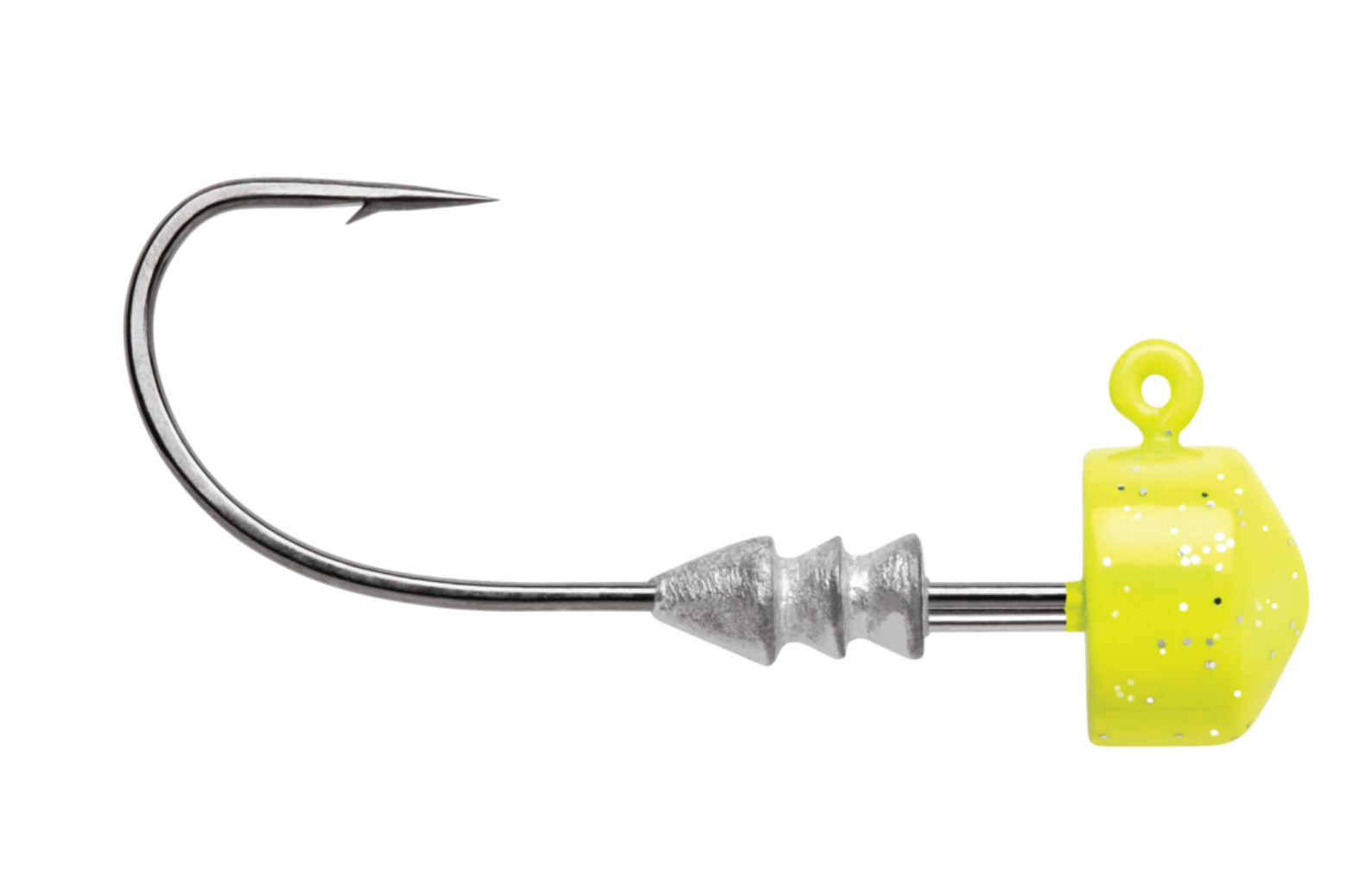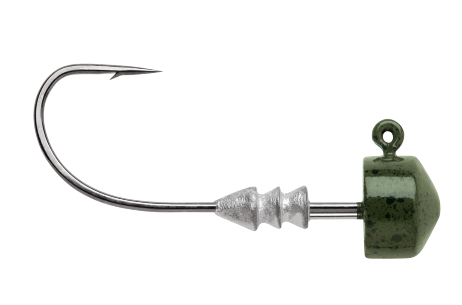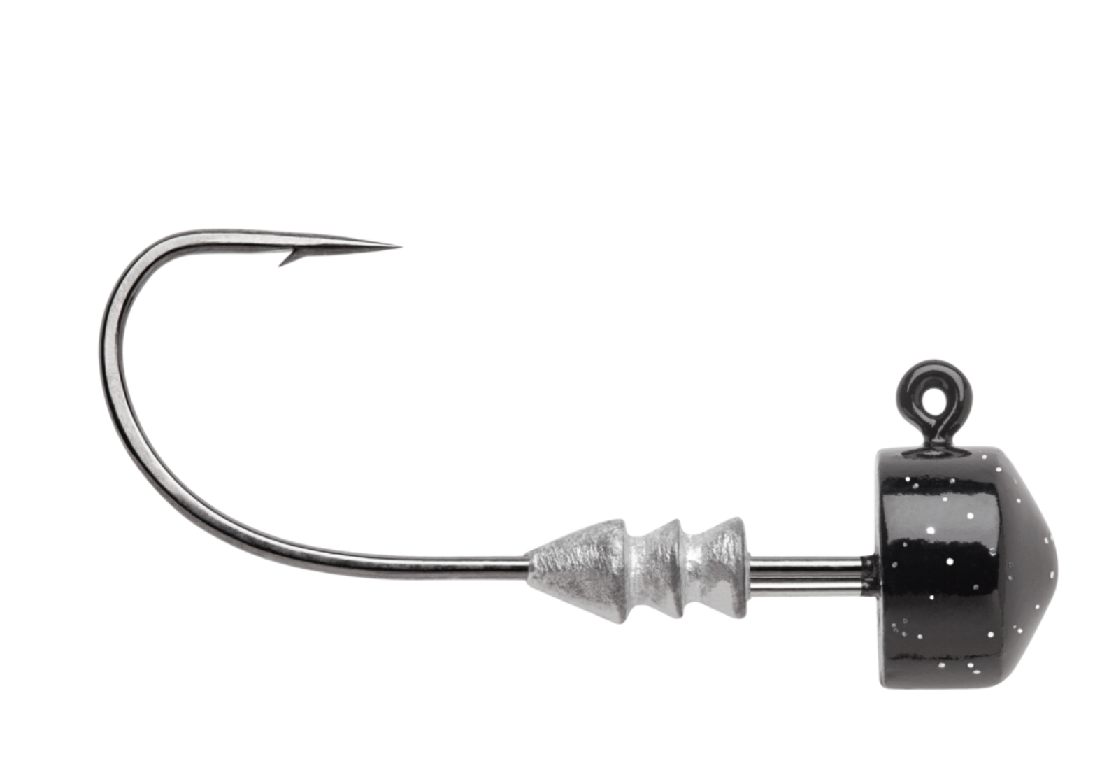 Optimal distance from keeper to jig head allows the plastic to remain in place on the hook shank by collapsing tightly in that area creating superior holding power.