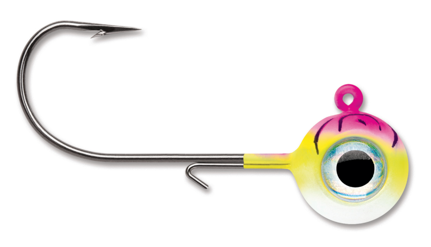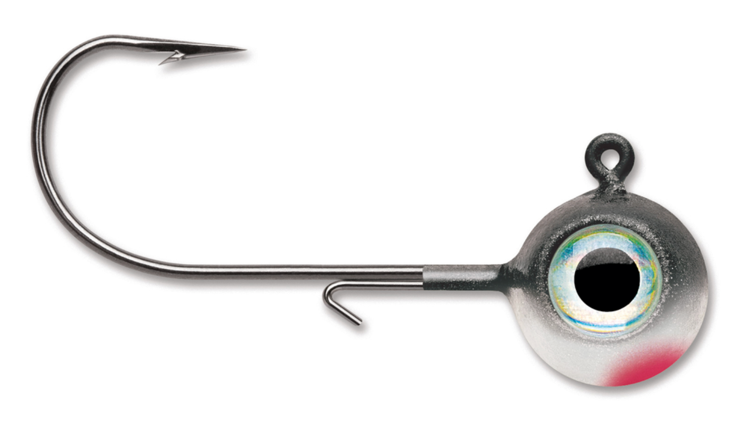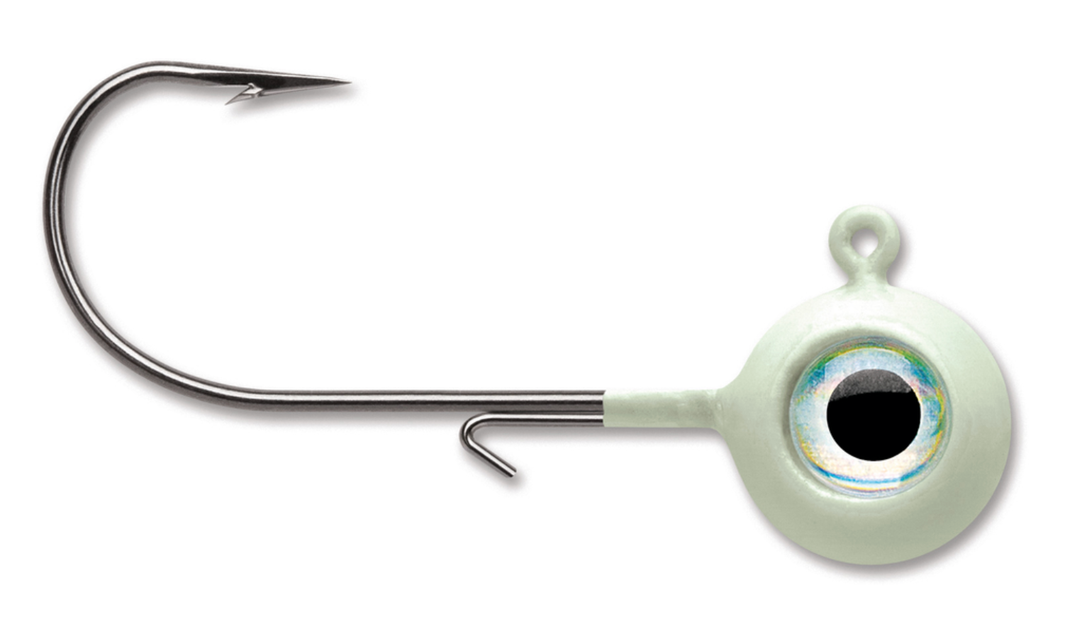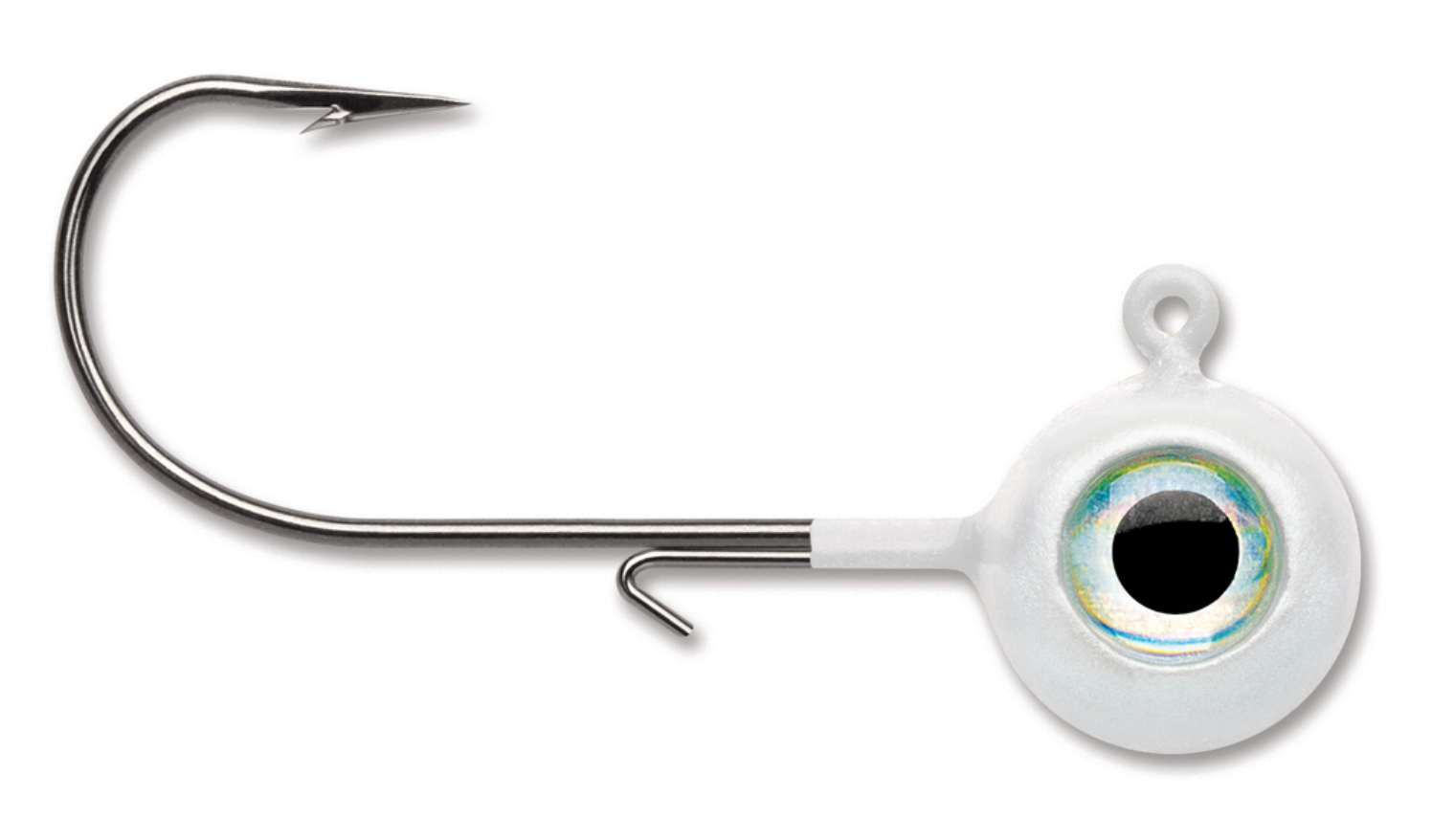 This VMC® upgraded version of the traditional Aspirin-shaped heads provides added control. 3-D holographic eyes create the illusion of a wider profile while adding realism. Assembled with a VMC® Premium high-carbon steel hook with top of the line black nickel finish. The wide range of colors includes UV Bright finish colors that guarantee you to catch more fish in all water conditions.