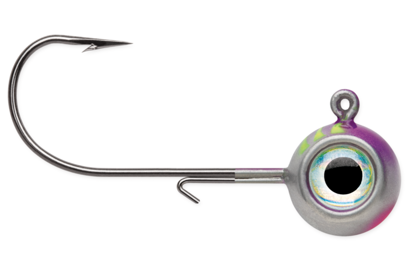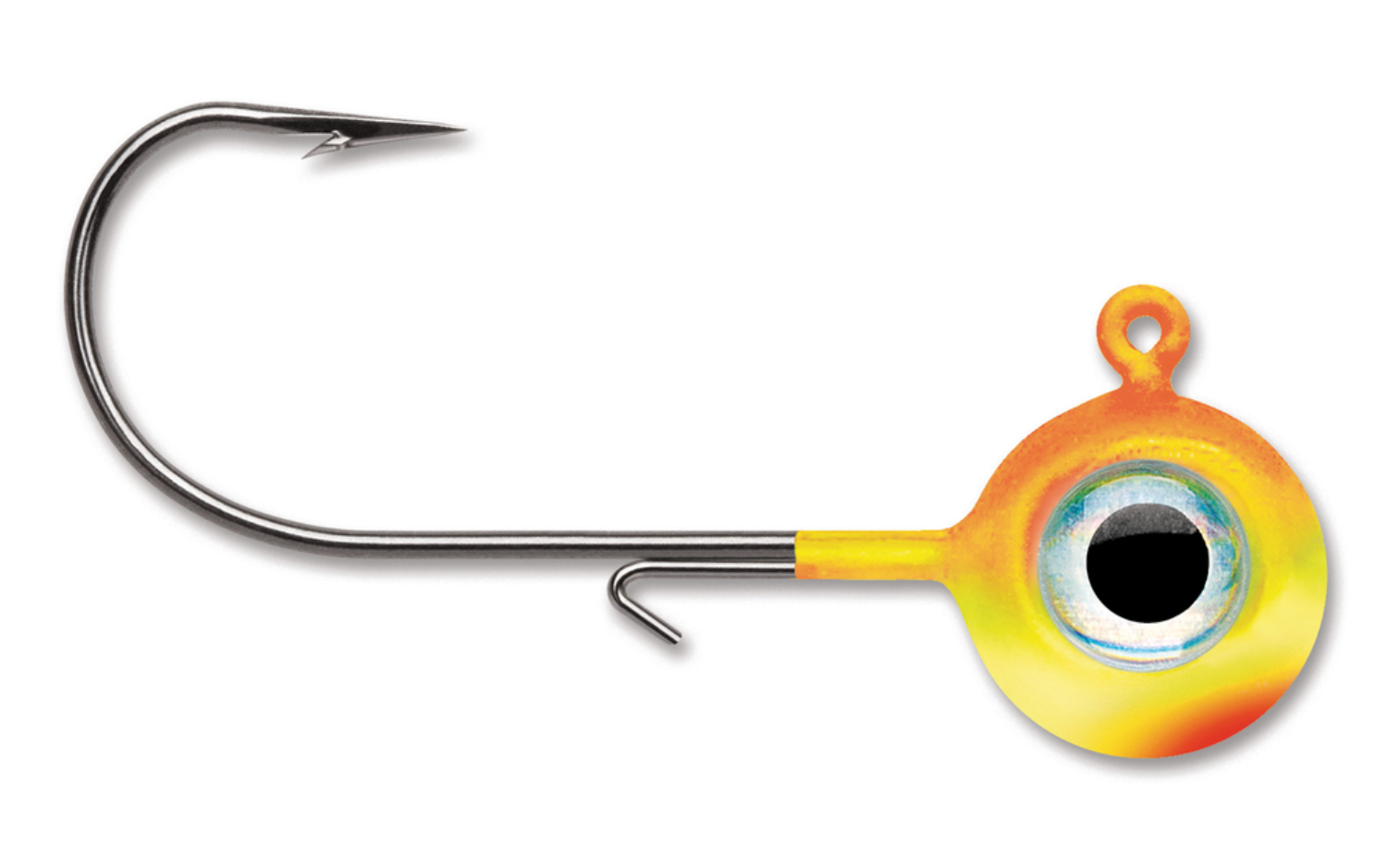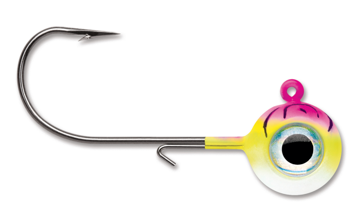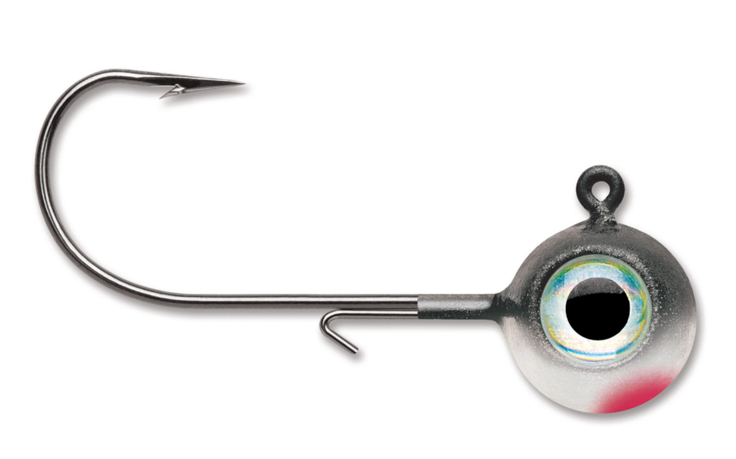 This VMC® upgraded version of the traditional Aspirin-shaped heads provides added control. 3-D holographic eyes create the illusion of a wider profile while adding realism. Assembled with a VMC® Premium high-carbon steel hook with top of the line black nickel finish. The wide range of colors includes UV Bright finish colors that guarantee you to catch more fish in all water conditions.