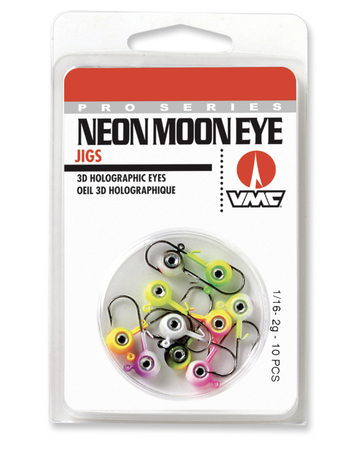 This VMC® upgraded version of the traditional Aspirin-shaped heads provides added control. 3-D holographic eyes create the illusion of a wider profile while adding realism. Assembled with a VMC® Premium high-carbon steel hook with top of the line black nickel finish. The wide range of colors guarantee you to catch more fish in all water conditions. Kit contains 10 assorted colors.