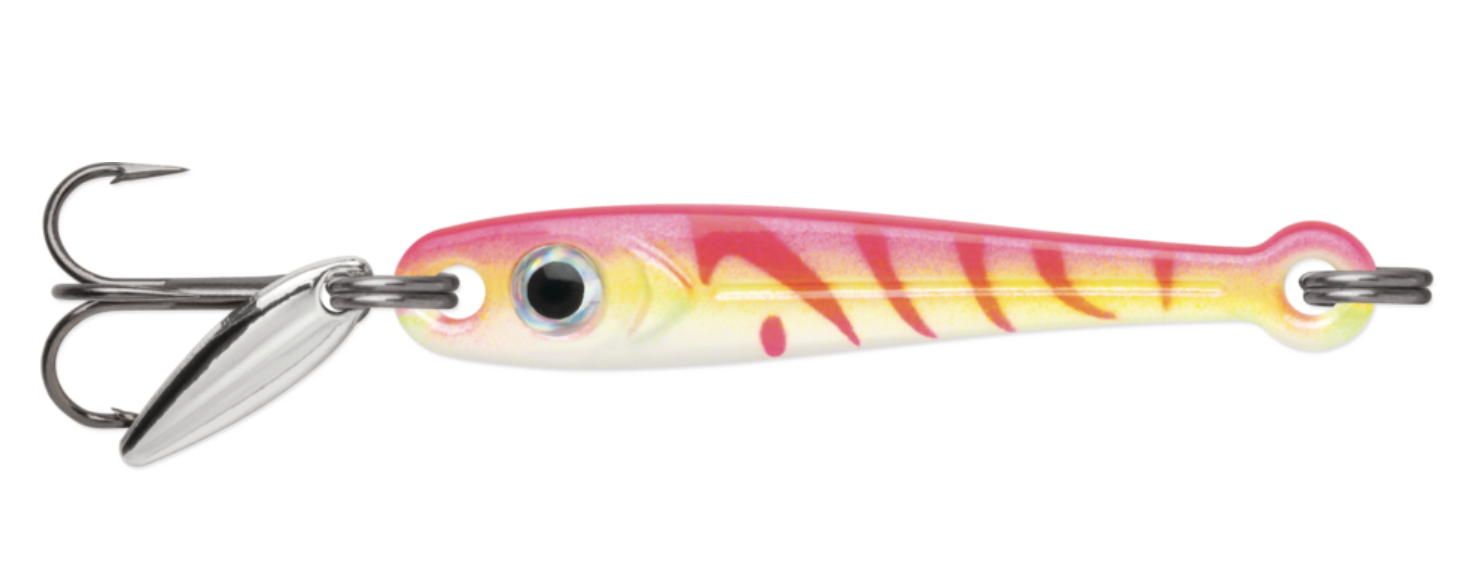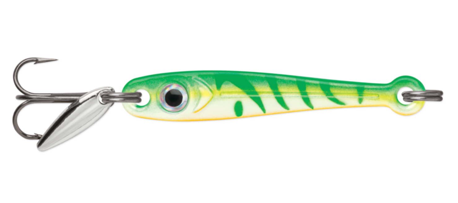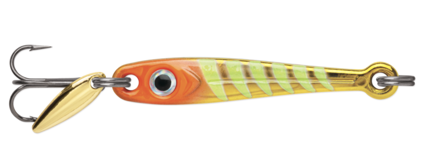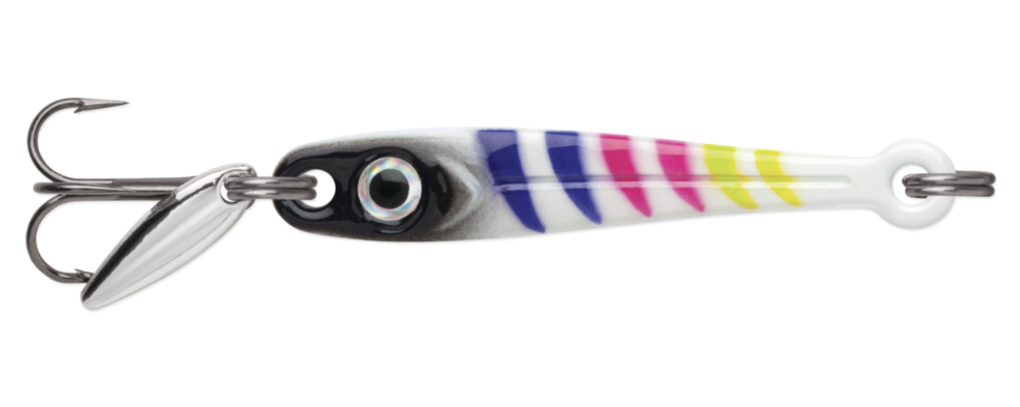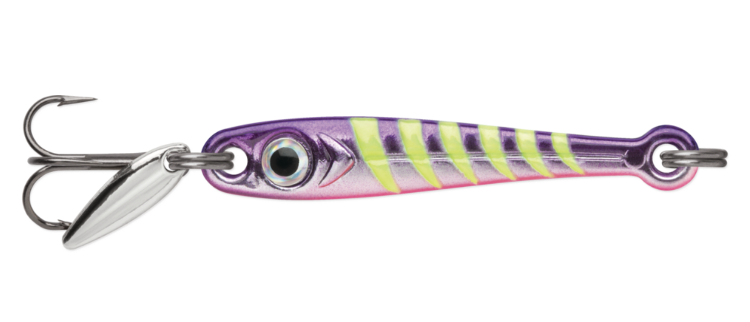 Tungsten construction provides the best return on electronics. Ultra fast sinking to target fish before they pass by. Small attractor blade adds flash and vibration. VMC® Ultra Glow colors last up to 15 minutes. UV polished metal finishes and double sided 3D holographic eyes.