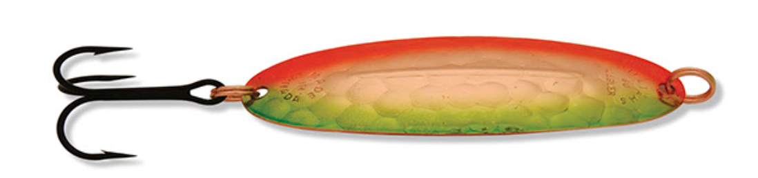 The Williams Wabler is the lure that founded the fishing tackle division of the Williams Company more than 100 years ago. The most recognized and still today the most popular model in the Williams series, the Wabler has been a mainstay of anglers. Originally popular as a lake trout spoon, the Wabler has proven itself, as the photo gallery of past literature will attest to, on a multitude of species including; rainbows, browns and all members of the trout family. A northern pike favourite, musky, walleye and salmon as well as salt water species in coastal waters. The Wabler, like all Williams lures, is stamped from premium polished brass. A multi-step plating operation then applies the genuine Silver and/or 24K Gold finishes that Williams lures are renowned for. These are not standard Silver and Gold finishes either. The final step in the Williams plating process incorporates a further plated “electroclear” outer coat which is then baked on. This process does not dull the finish as a laquer would. It does render Williams Silver and 1/2 & 1/2 finishes saltwater resistant and basically tarnish proof. The Wabler is a versatile spoon which works equally well at a wide range of speeds due to its stabilizing ridge and shape. The ridge which has become a trademark of Williams lures prevents the Wabler from rotating without changing the proven shape and action of the lure. This ridge works so well that Williams was awarded a US and Canadian patent for it. One of the few patents ever awarded to a spoon. Time tested and proven, a true Canadian classic with worldwide recognition.